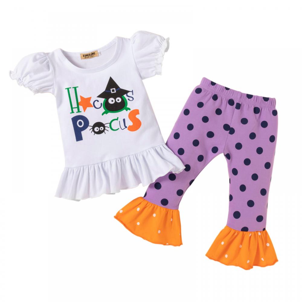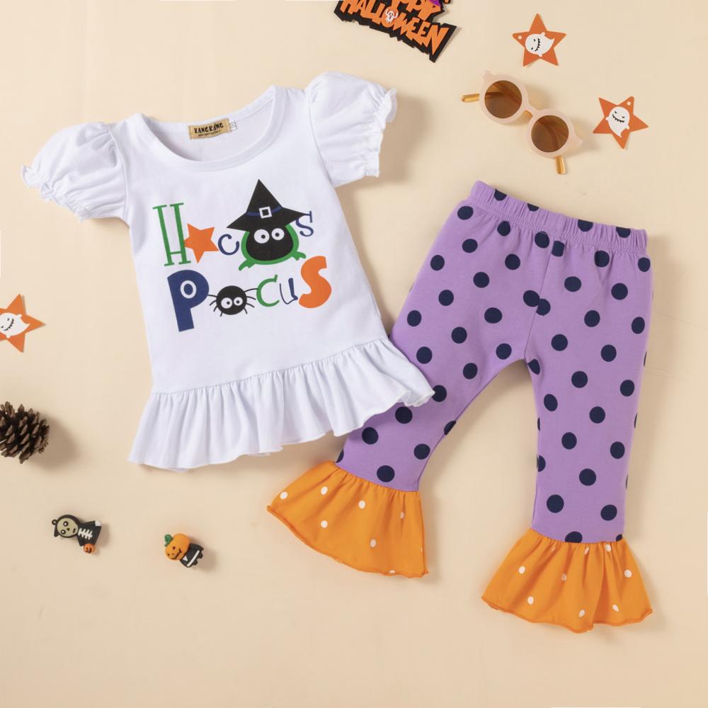 Halloween Short Sleeve Pull Up Pants Girls Set Wholesale Girls Clothes