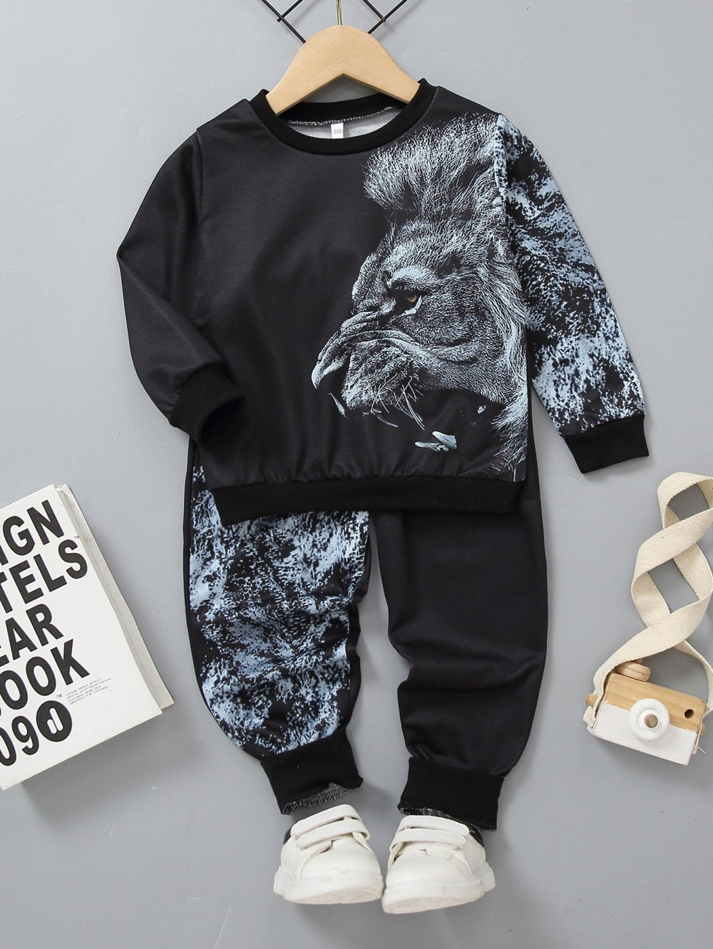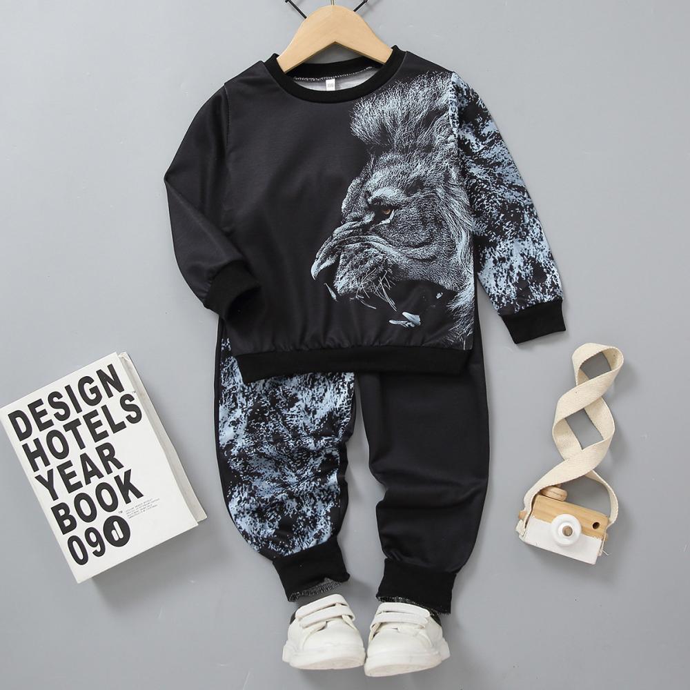 Toddler Boys Spring Autumn Lion Printed Top and Pants Set Wholesale Boys Clothing