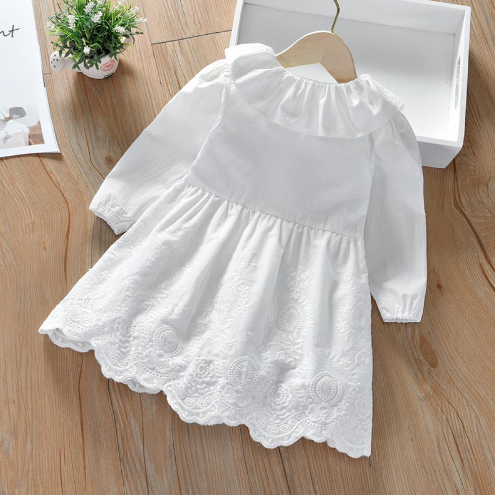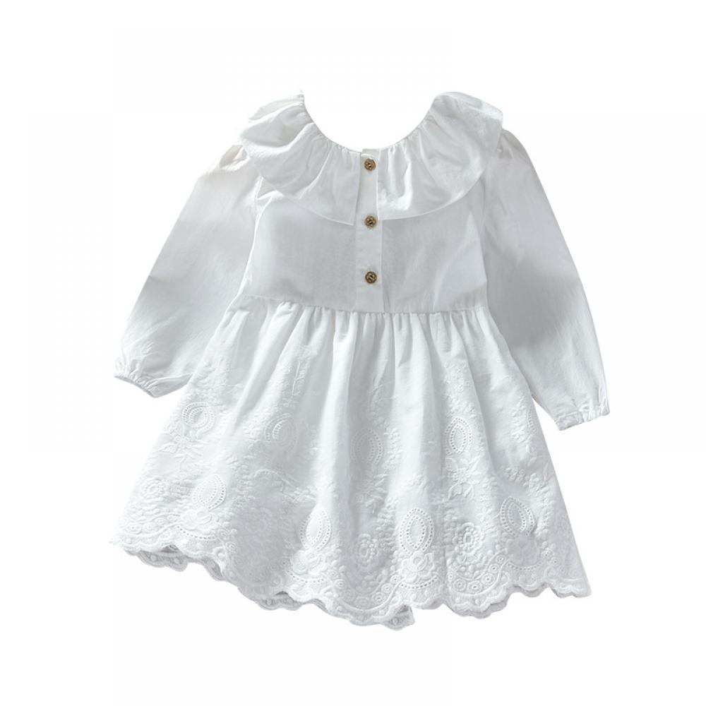Toddler Girls Long Sleeve Dress Spring and Autumn Dress Western Style White Dress Wholesale Girl Dress