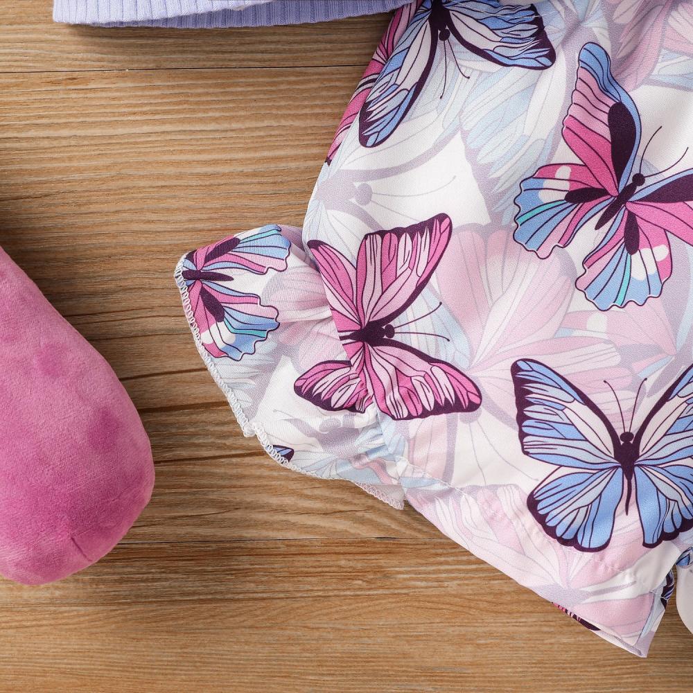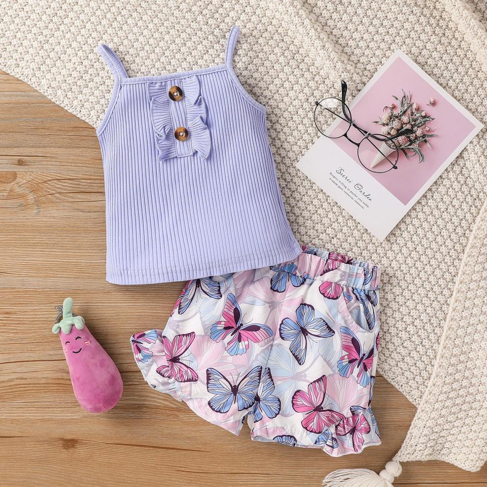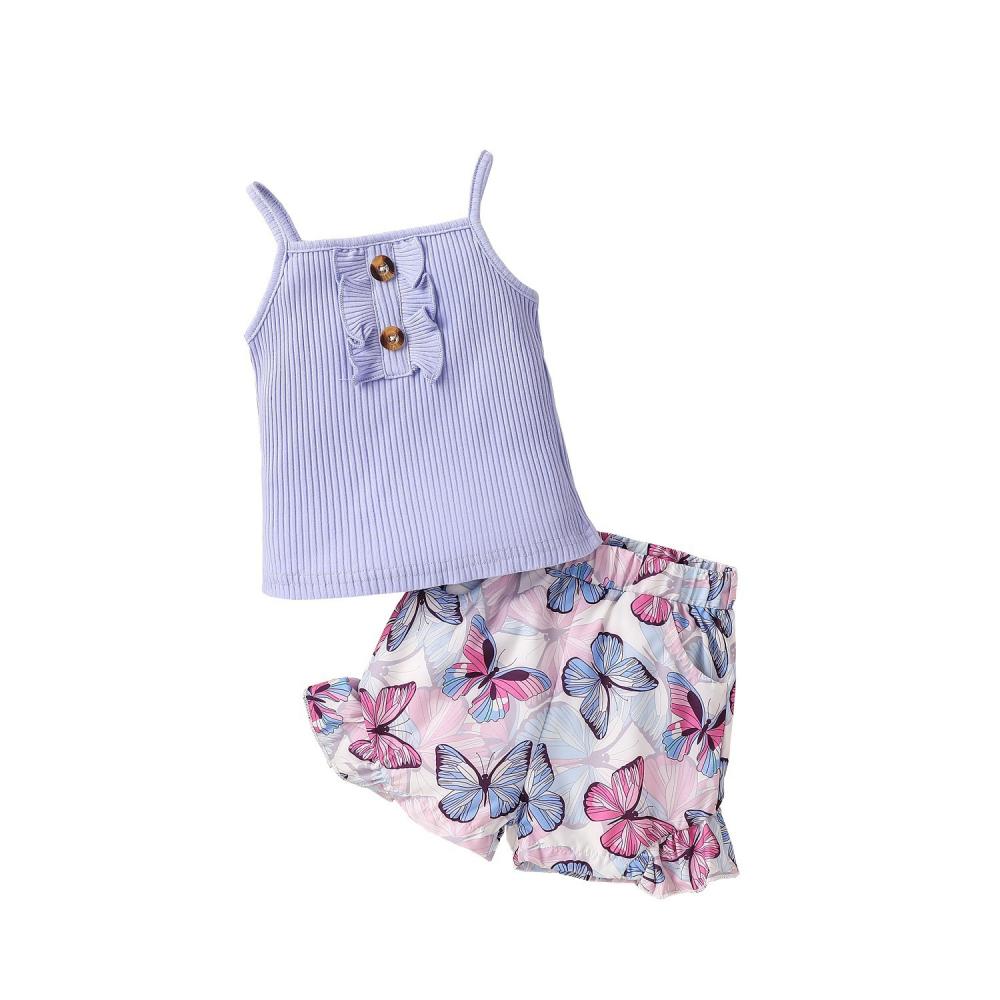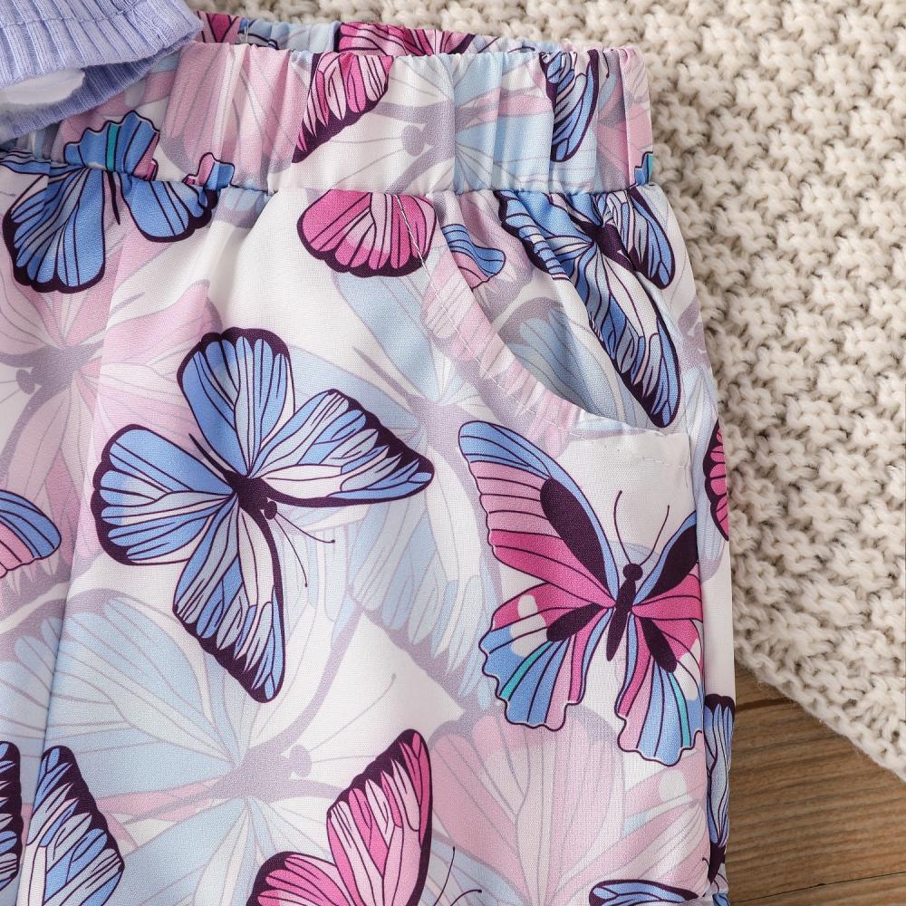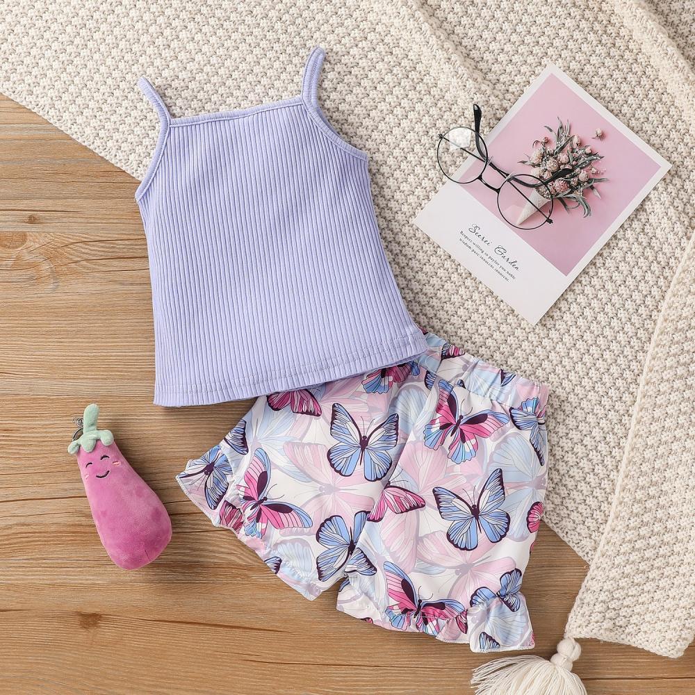 Toddler Girls Summer Knit Top + Butterfly Print Pants Set Wholesale Girls Clothes