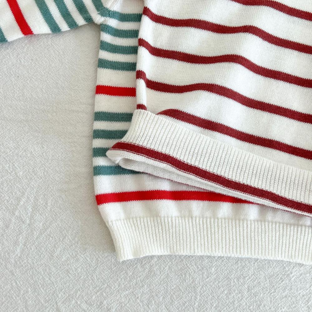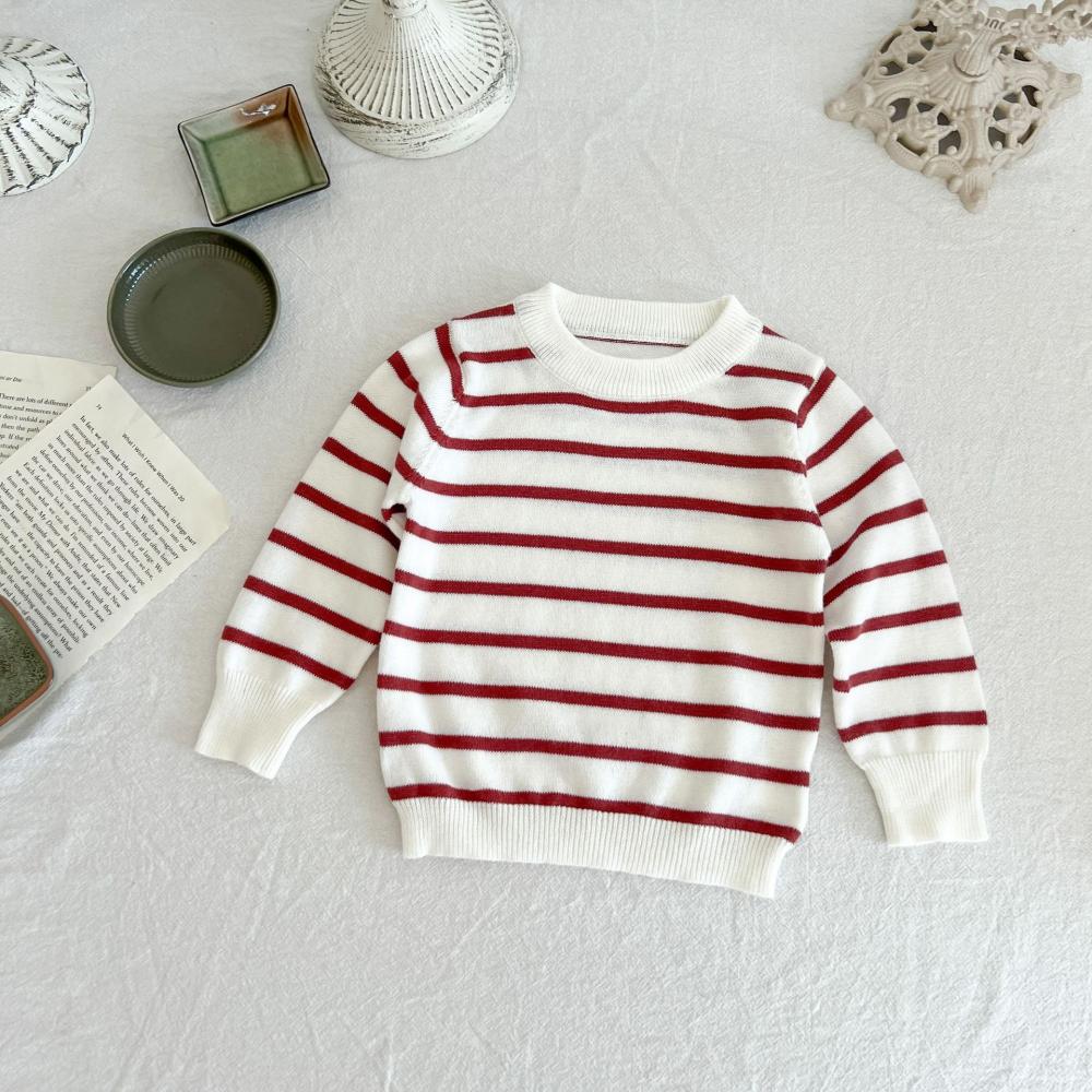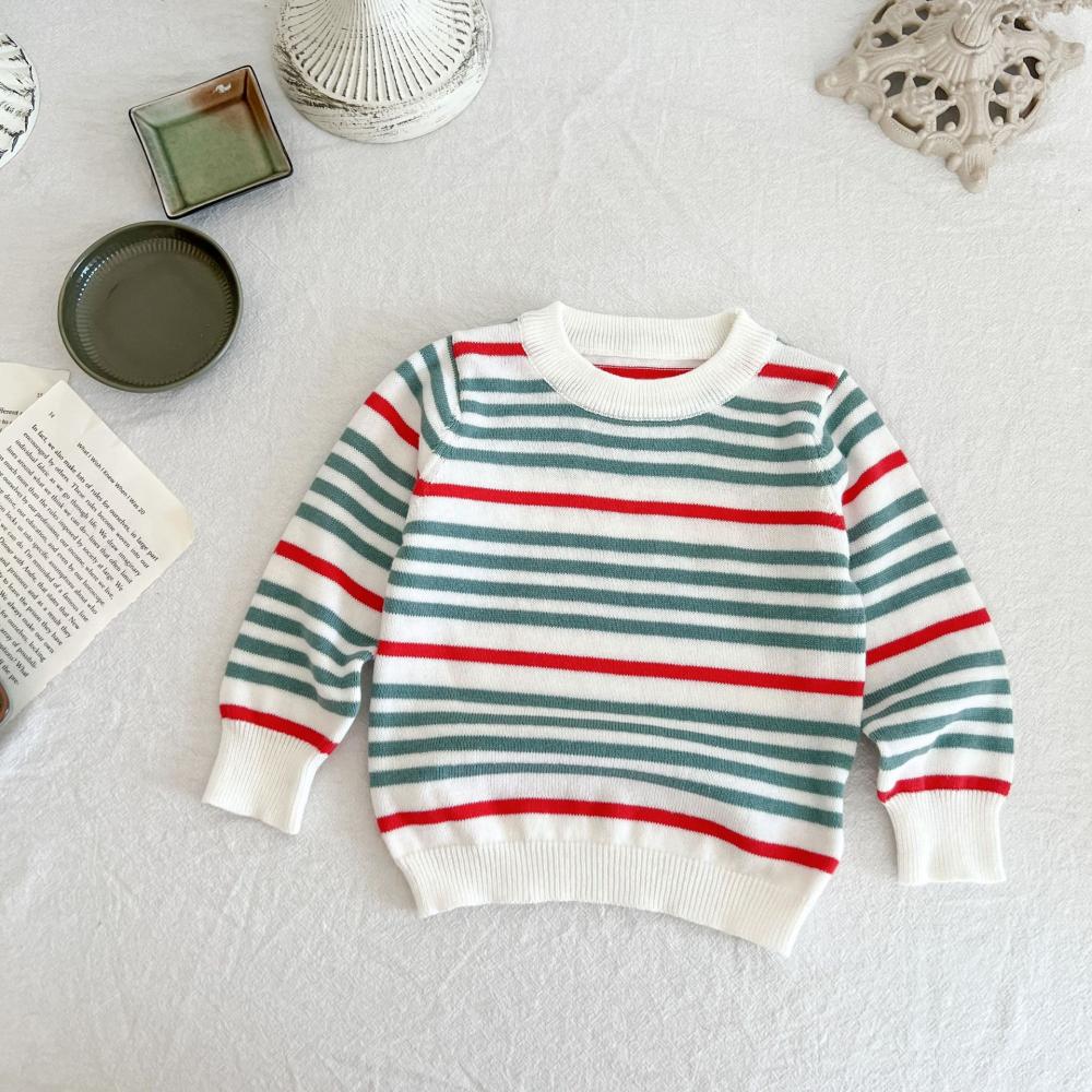 Unisex Autumn Baby Contrast Color Striped Knit Sweater T-shirt Wholesale Baby Children Clothes
