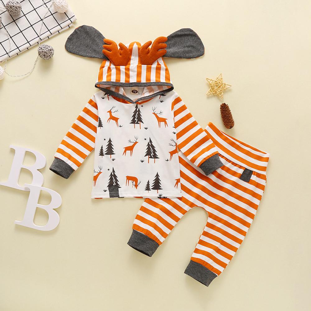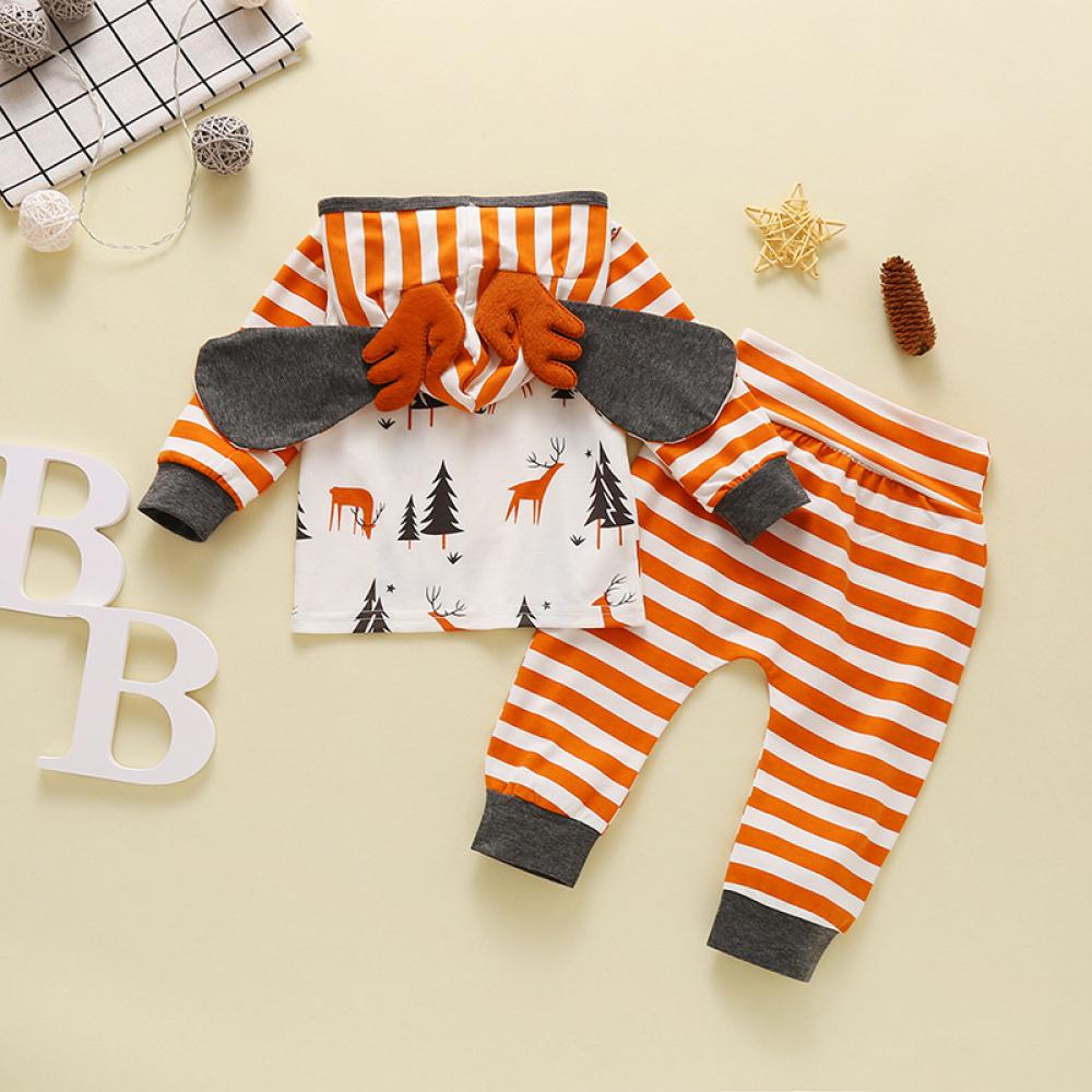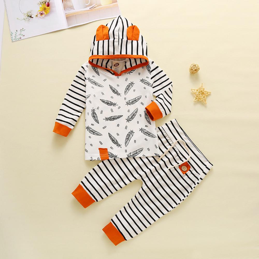 Unisex Newborn Baby Stripe Hoodie Top and Pants Set Boy Wholesale Clothing