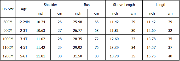 80 (12-24M), 90 (2-3T), 100 (3-4T), 110 (4-5T), 120 (5-6T)