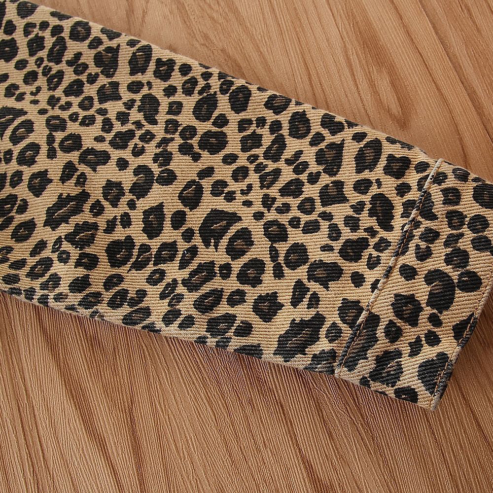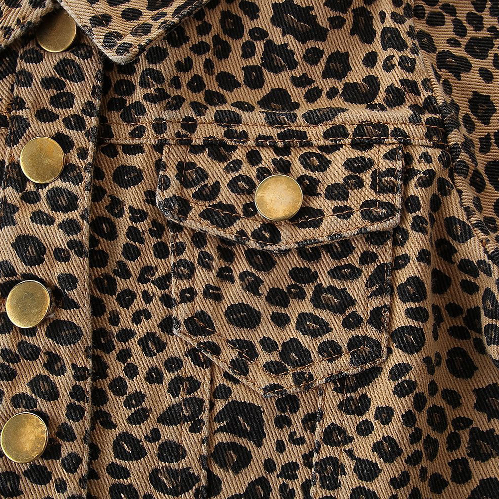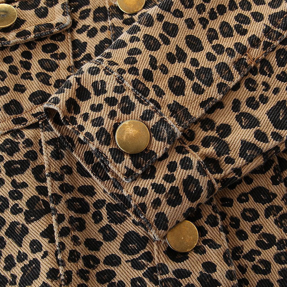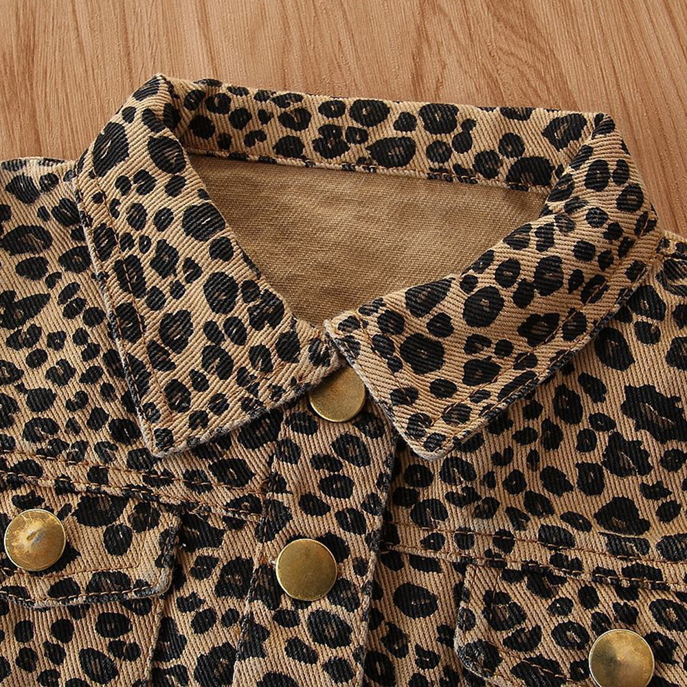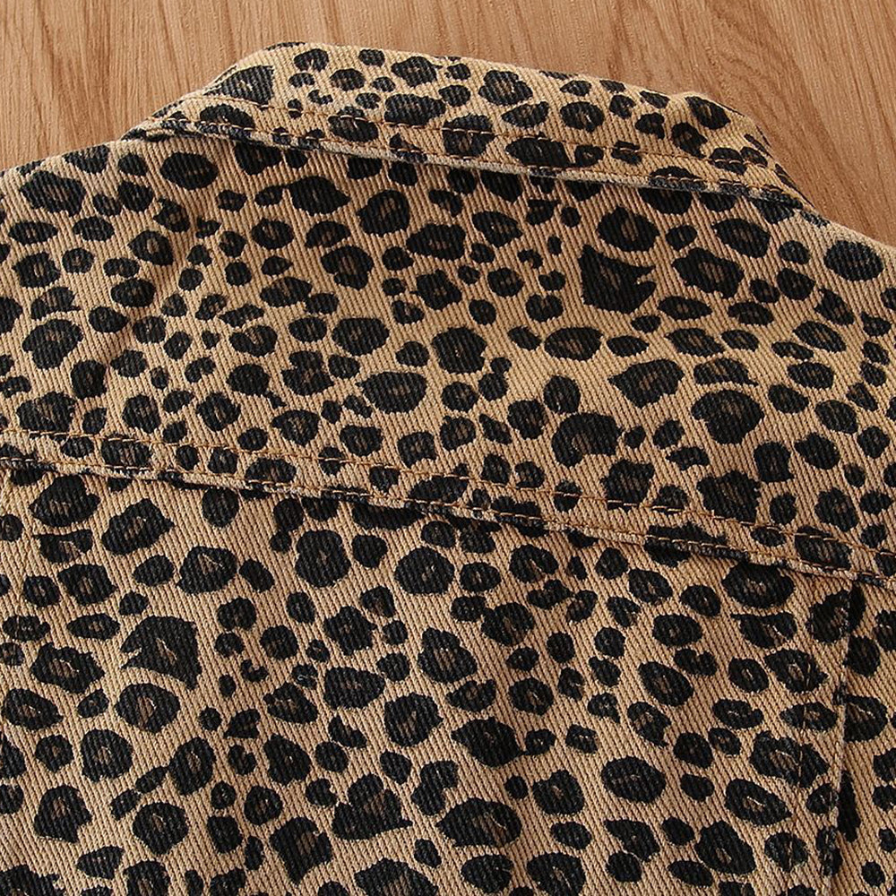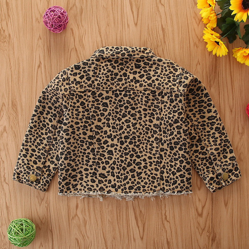 Girls Leopard Denim Lapel Long Sleeve Button Jacket Wholesale