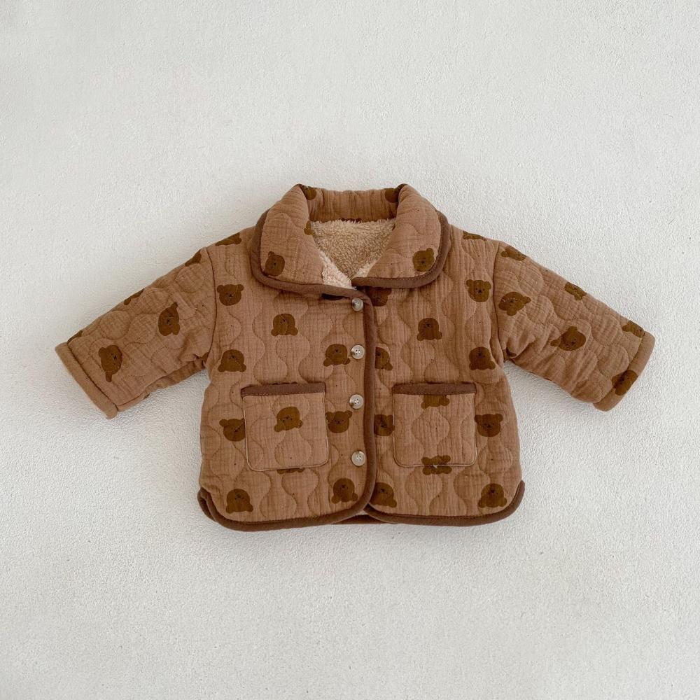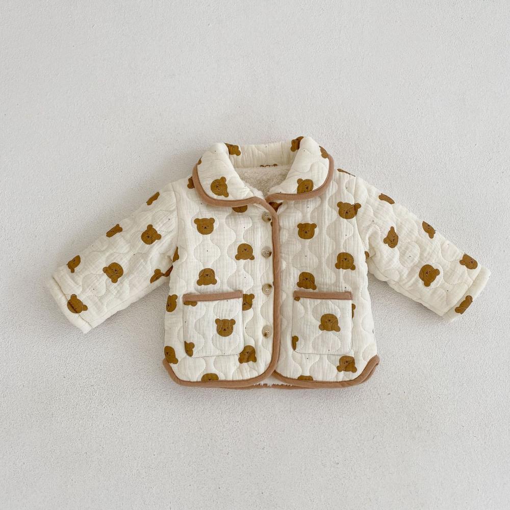 Winter Print Cute Bear Thickened Padded Jacket Baby Quilted Plus Velvet Coat Wholesale Baby Clothes
