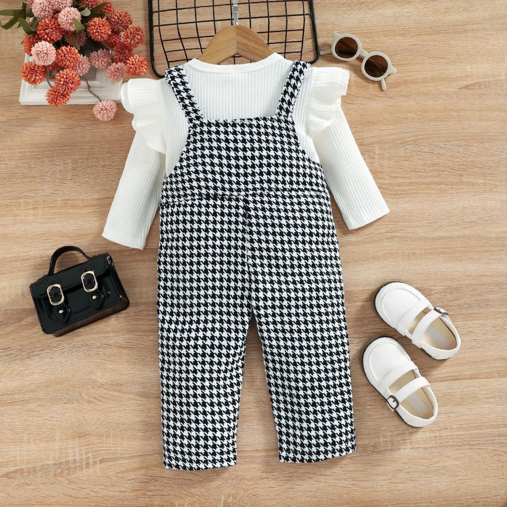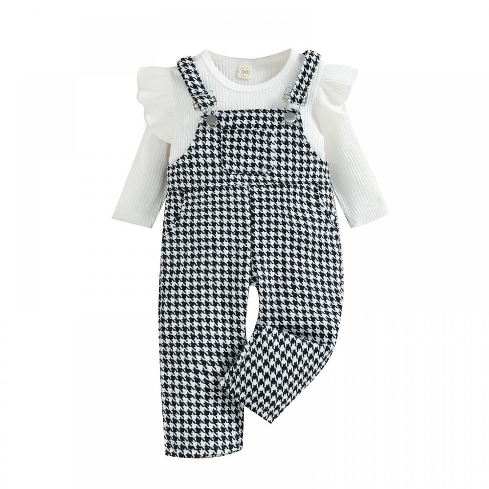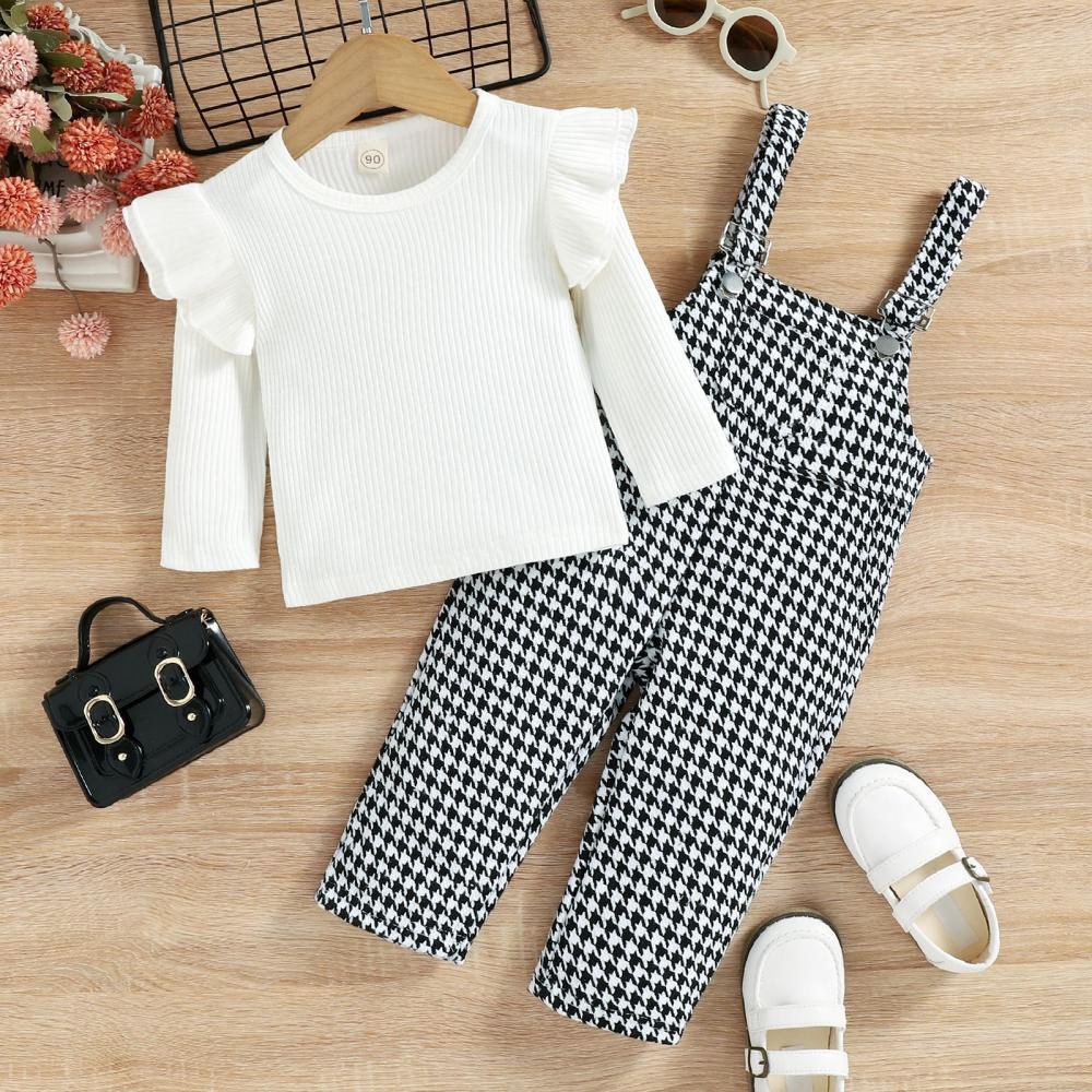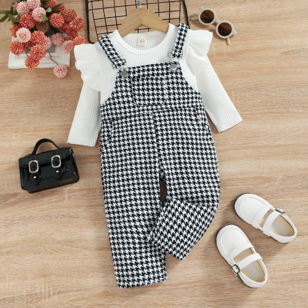 Autumn And Winter Pit Strip Flying Sleeve Jacket Long Sleeve Strap Pants Two-piece Wholesale Girls Clothes