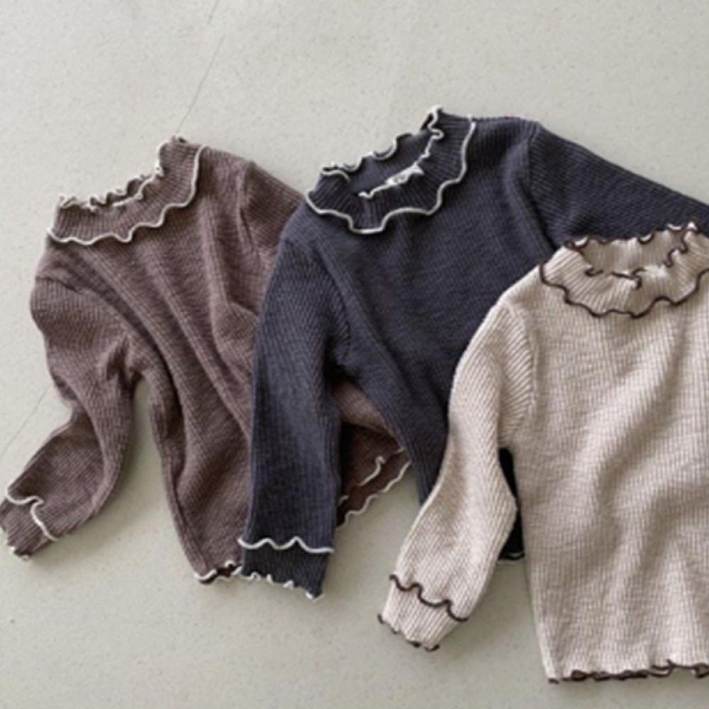 Baby Girl Autumn and Winter Solid Color Cotton Bottoming Shirt With Fungus Edge T-shirt Wholesale Baby Clothes