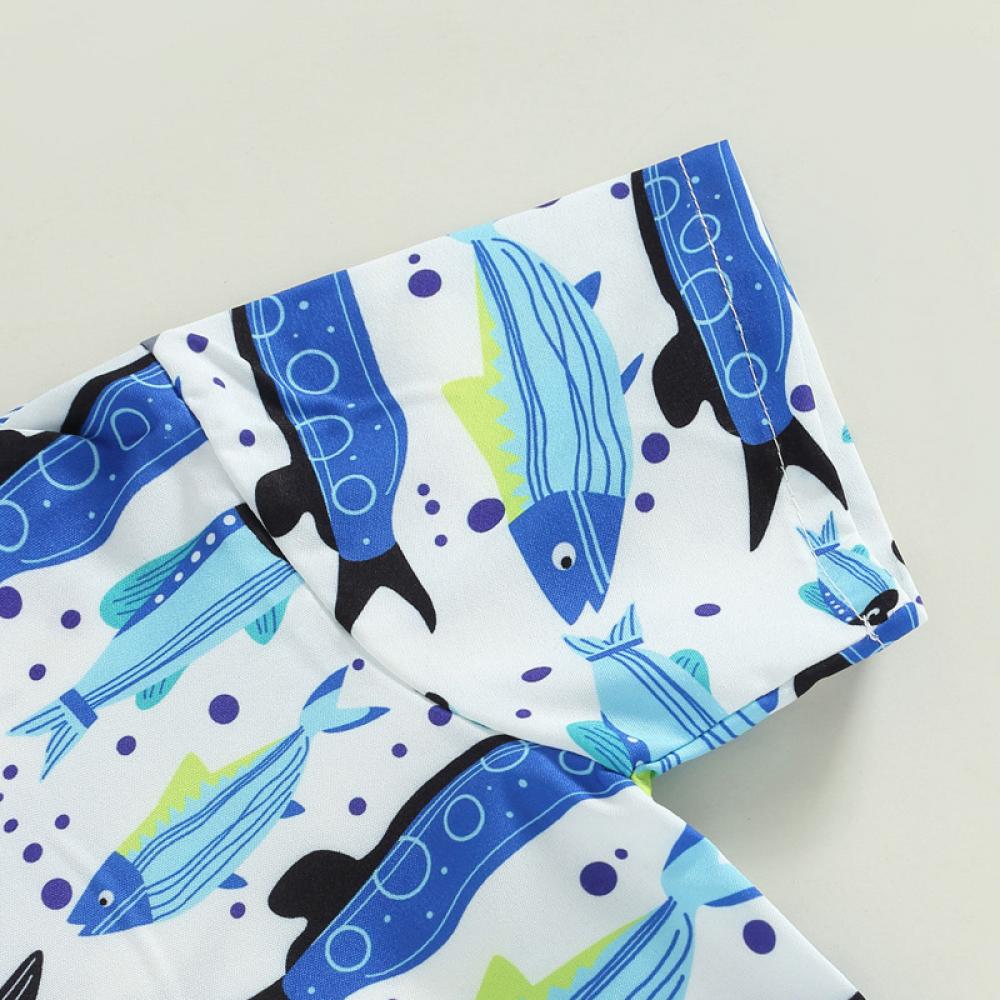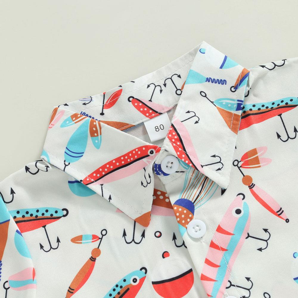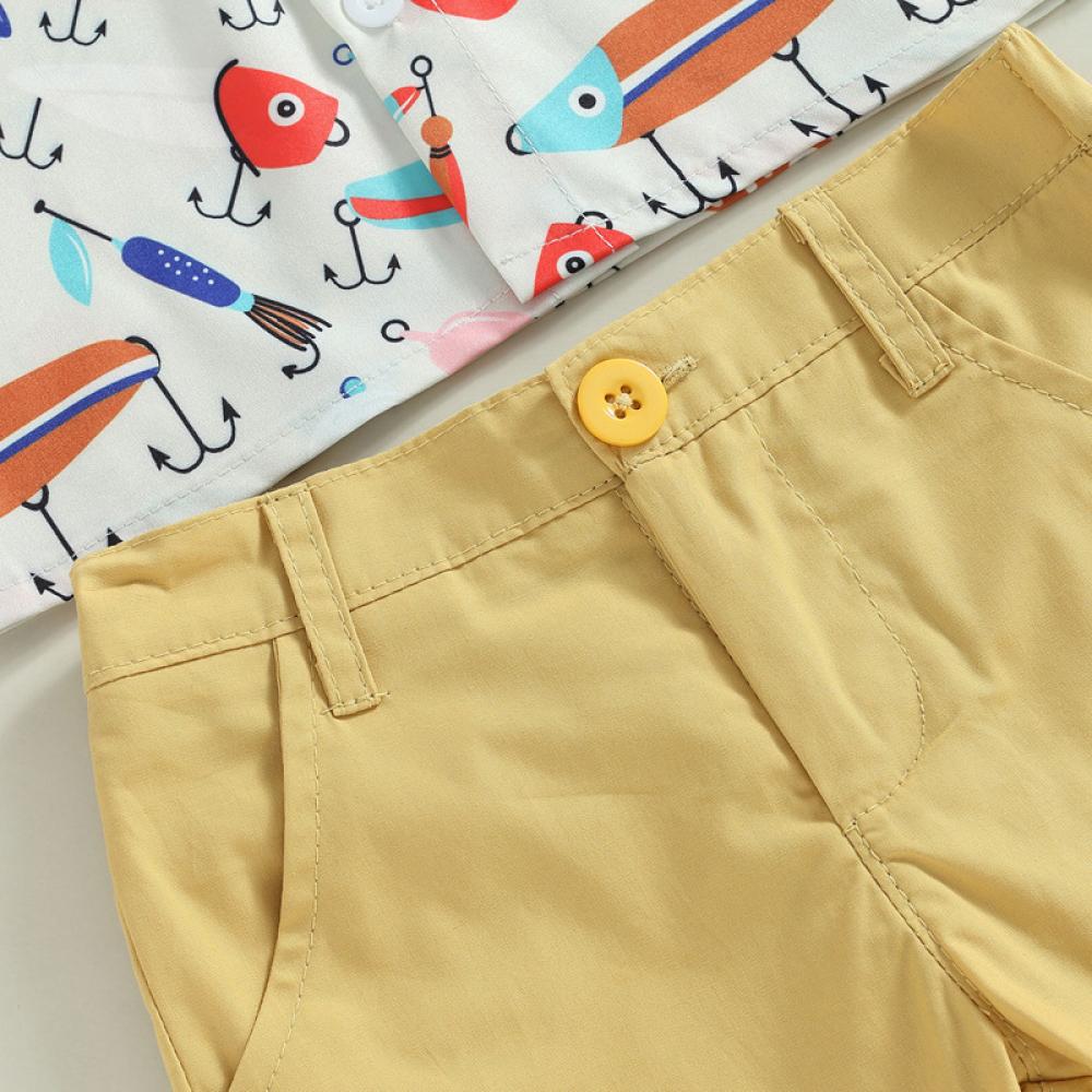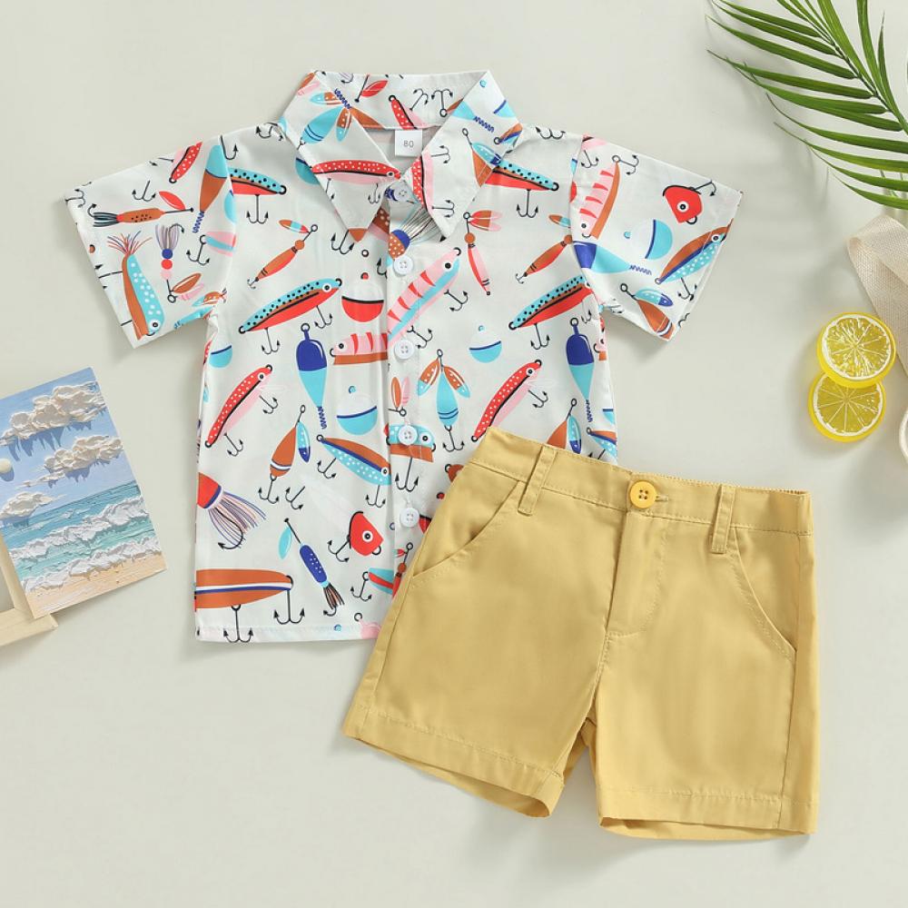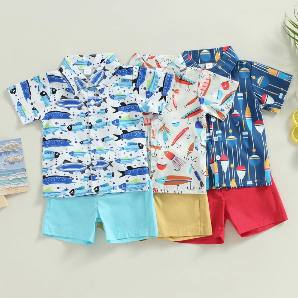 Boy Summer Short Sleeve Printed Shirt Solid Color Shorts Casual Two-piece Set Wholesale Boys Clothes