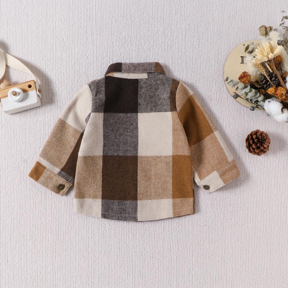 Boys' autumn and winter plaid lapel long sleeved jacket Wholesale Baby Boy Clothes