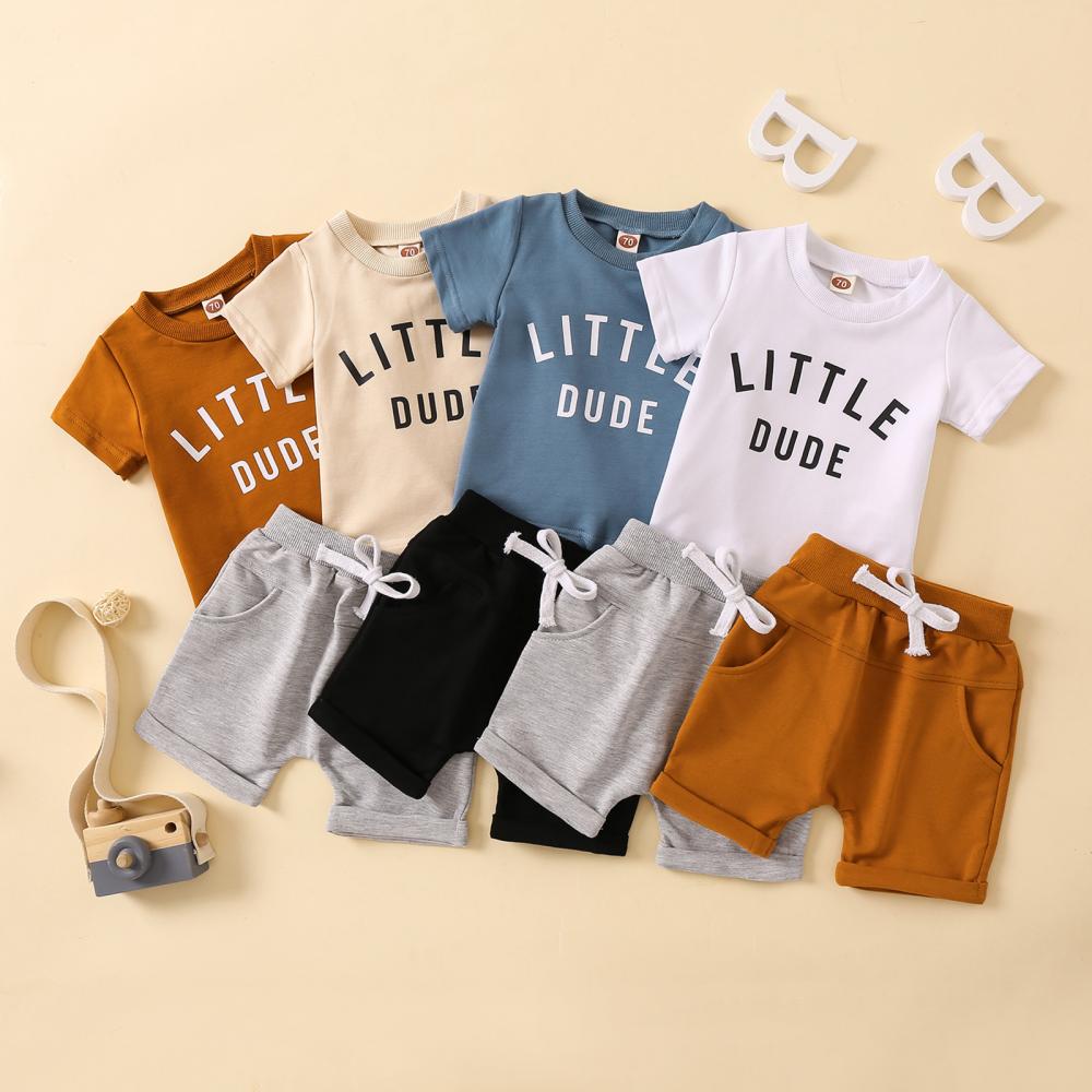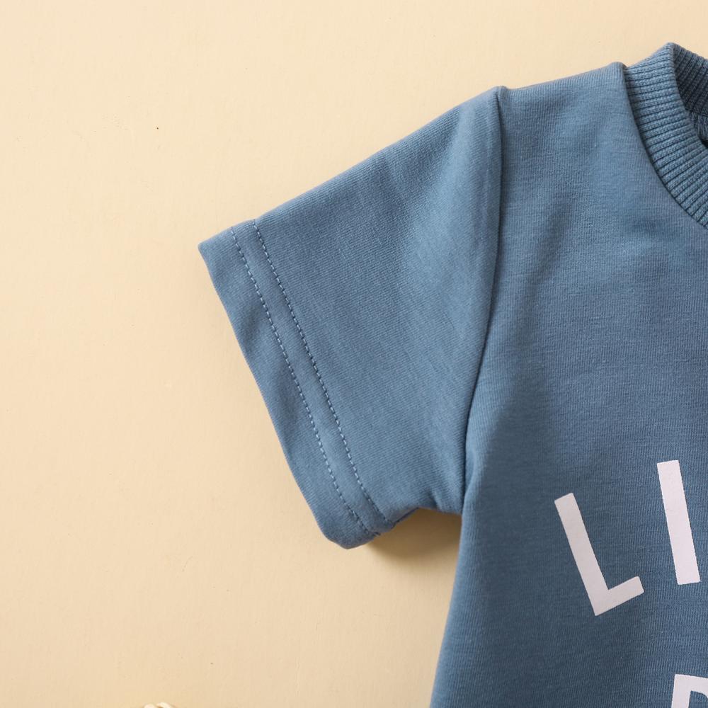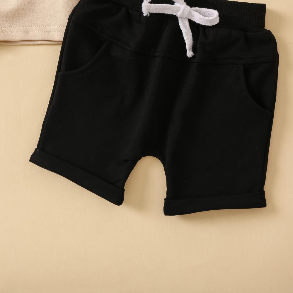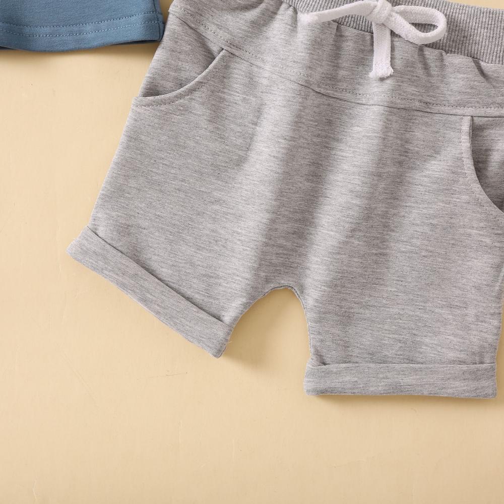 Boys' Round Neck Letter Printed Top Solid Color Shorts Suit Wholesale Baby Clothes