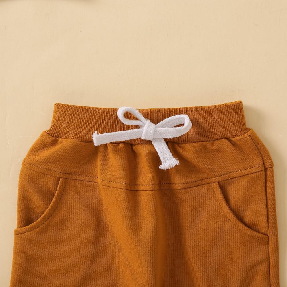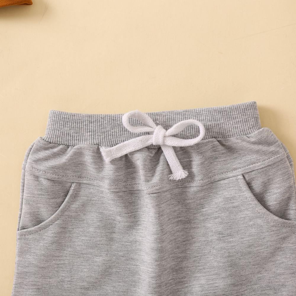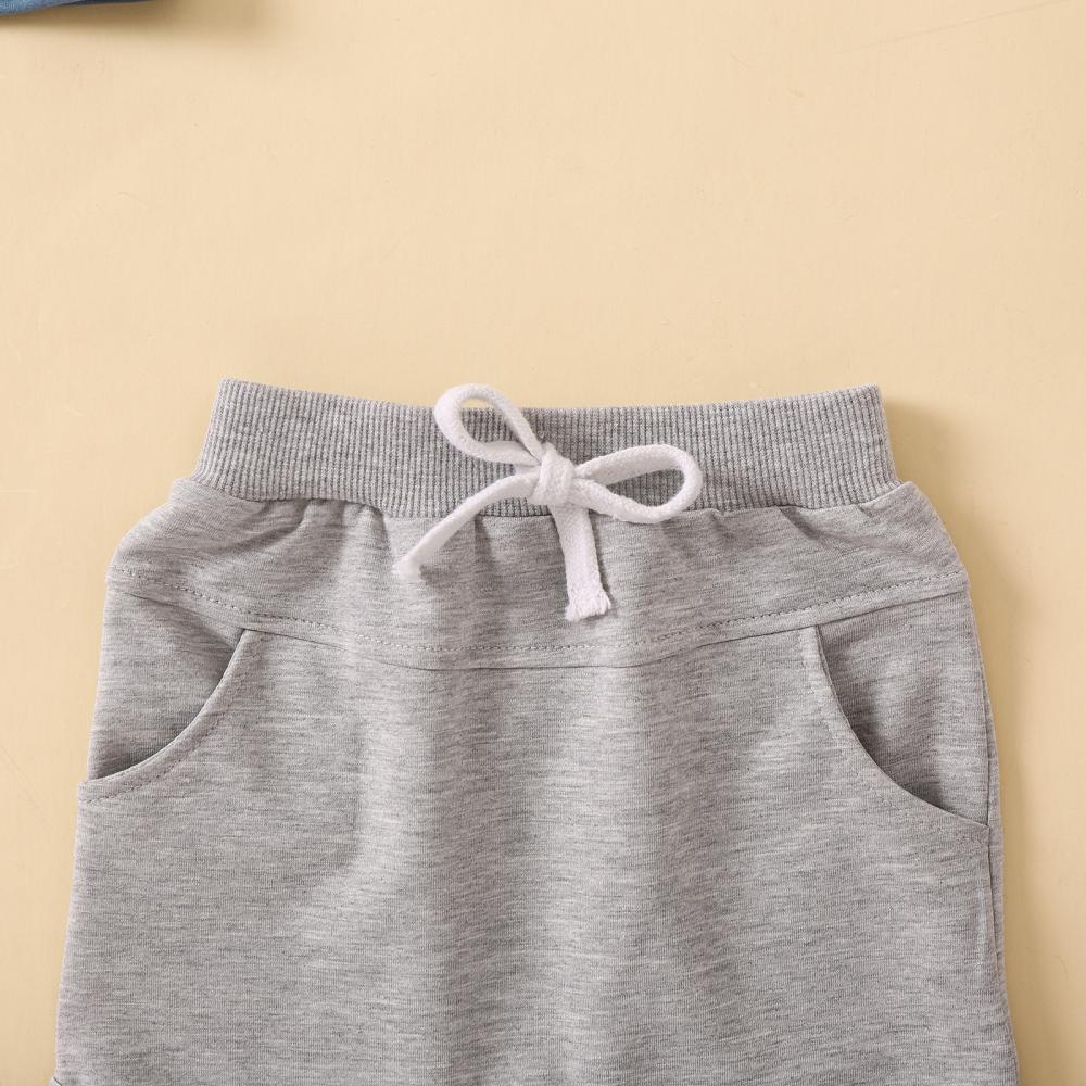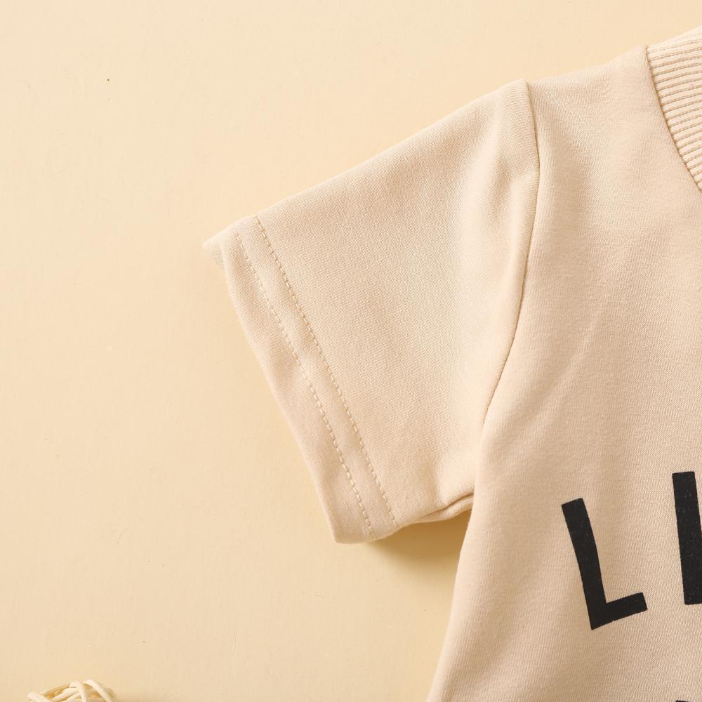 Boys' Round Neck Letter Printed Top Solid Color Shorts Suit Wholesale Baby Clothes