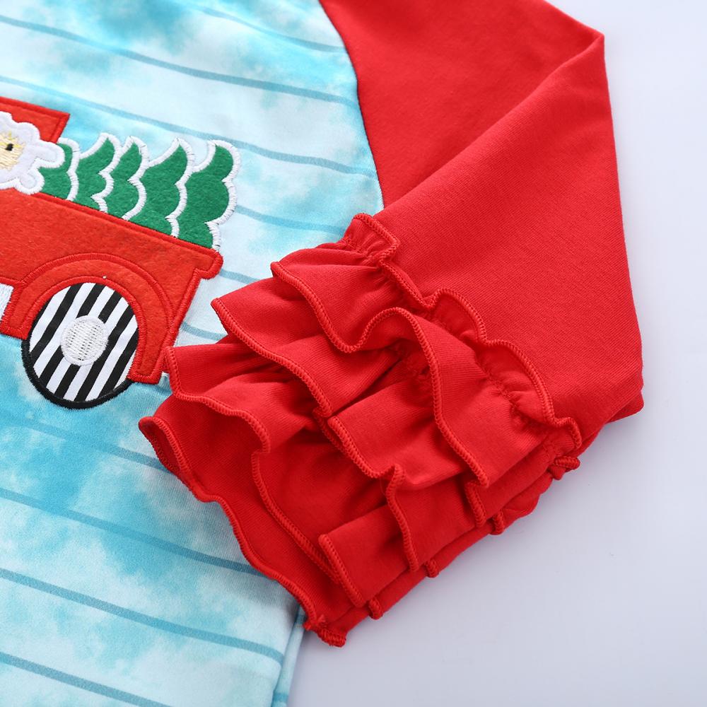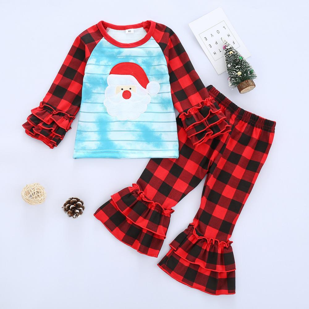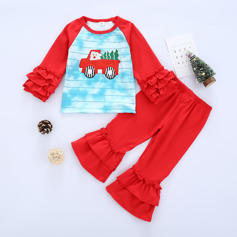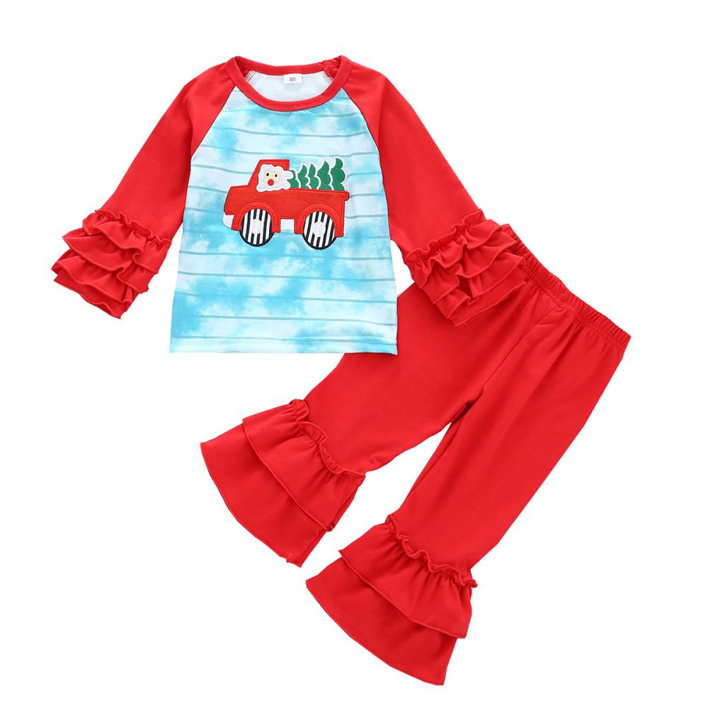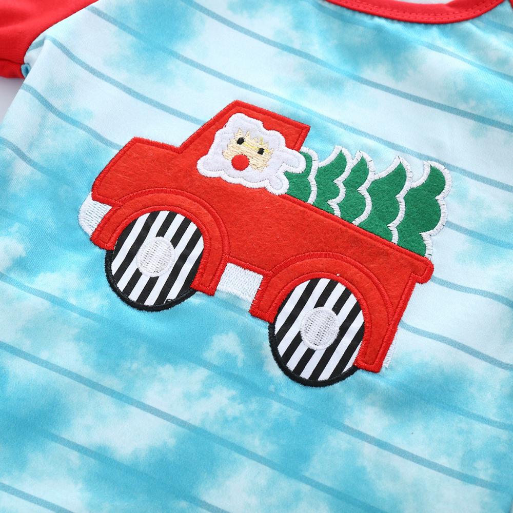 Christmas Kids Cartoon Santa Claus Car Embroidered Plaid Pants Set Wholesale Kids Clothes