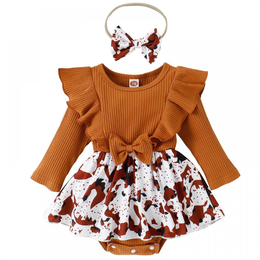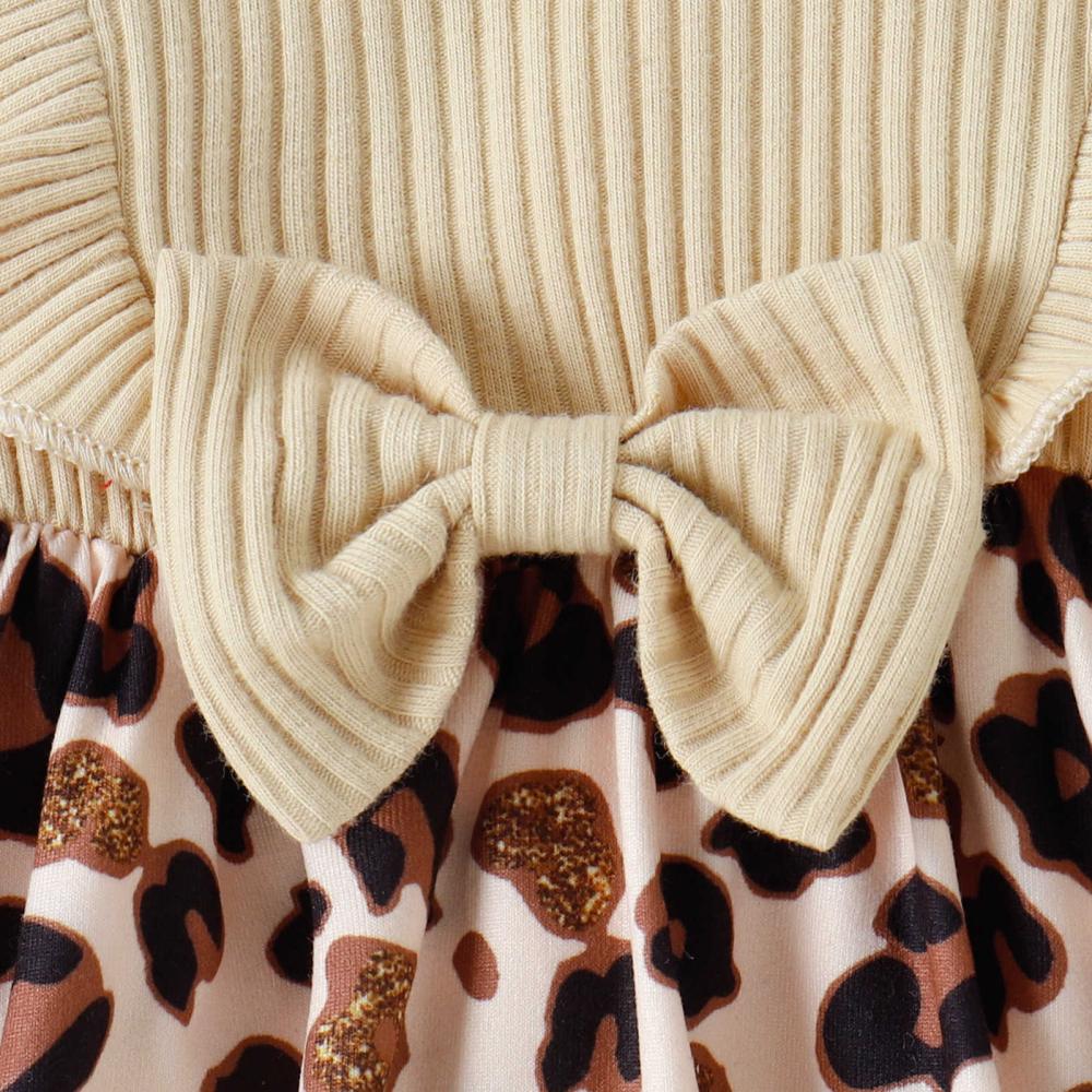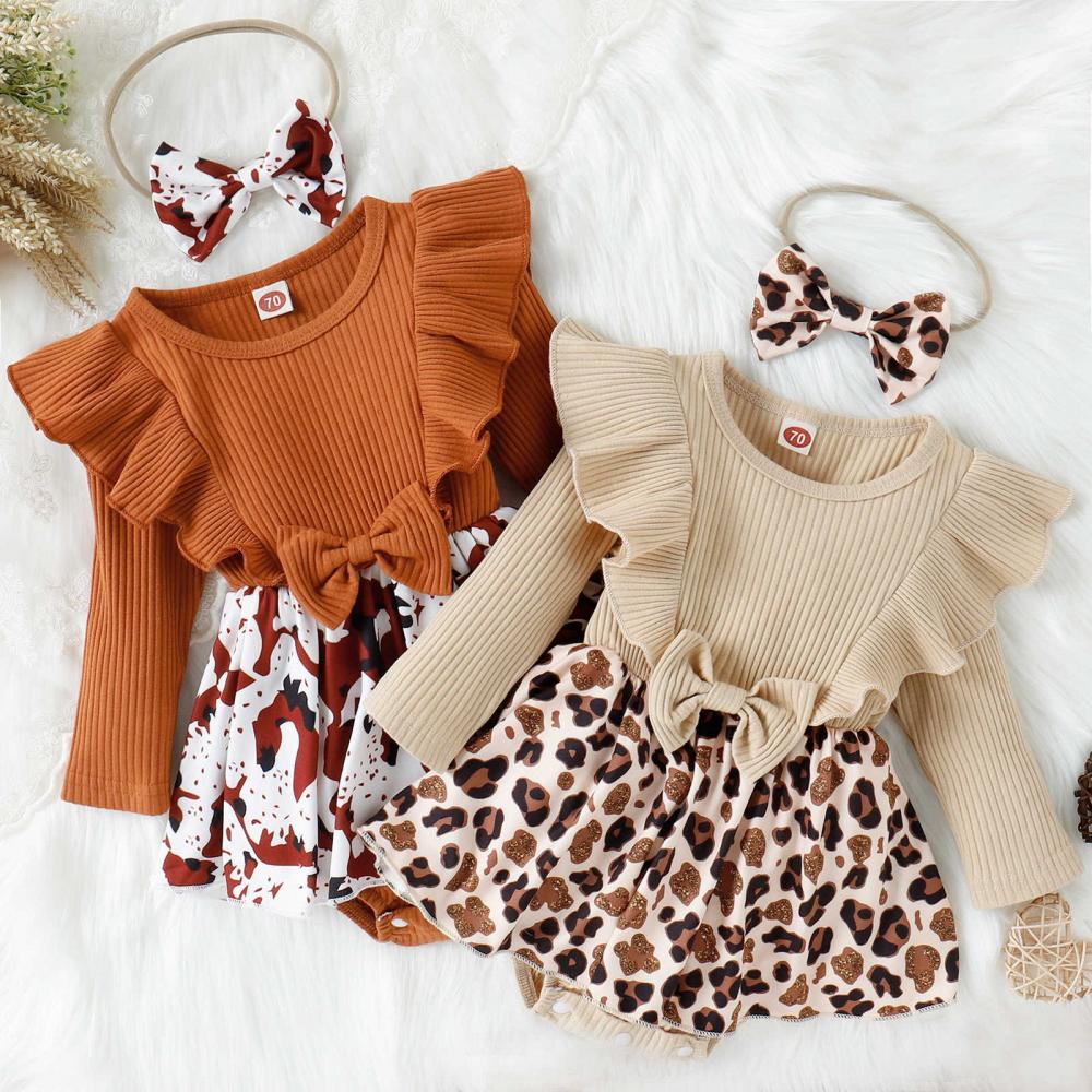 Spring And Autumn New Baby Girl Lace Long Sleeve Leopard Print Skirt Romper Wholesale Girls Clothes