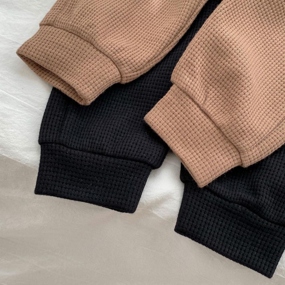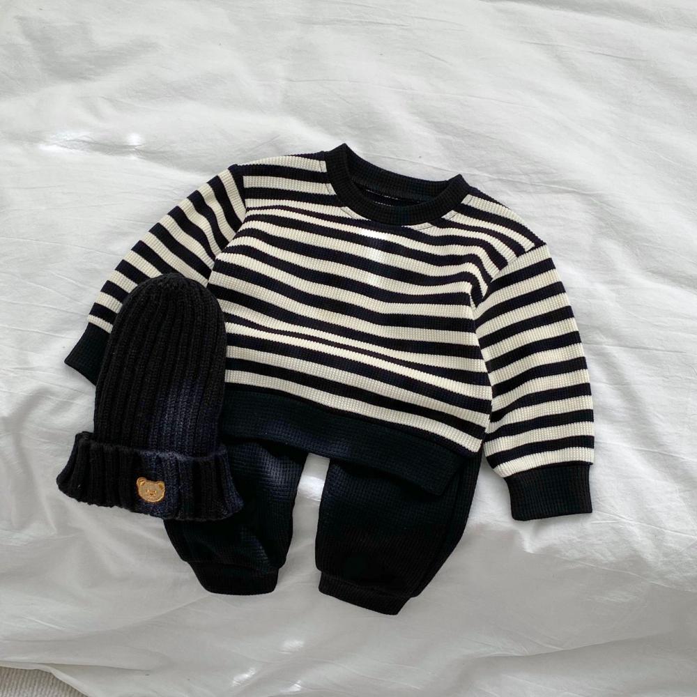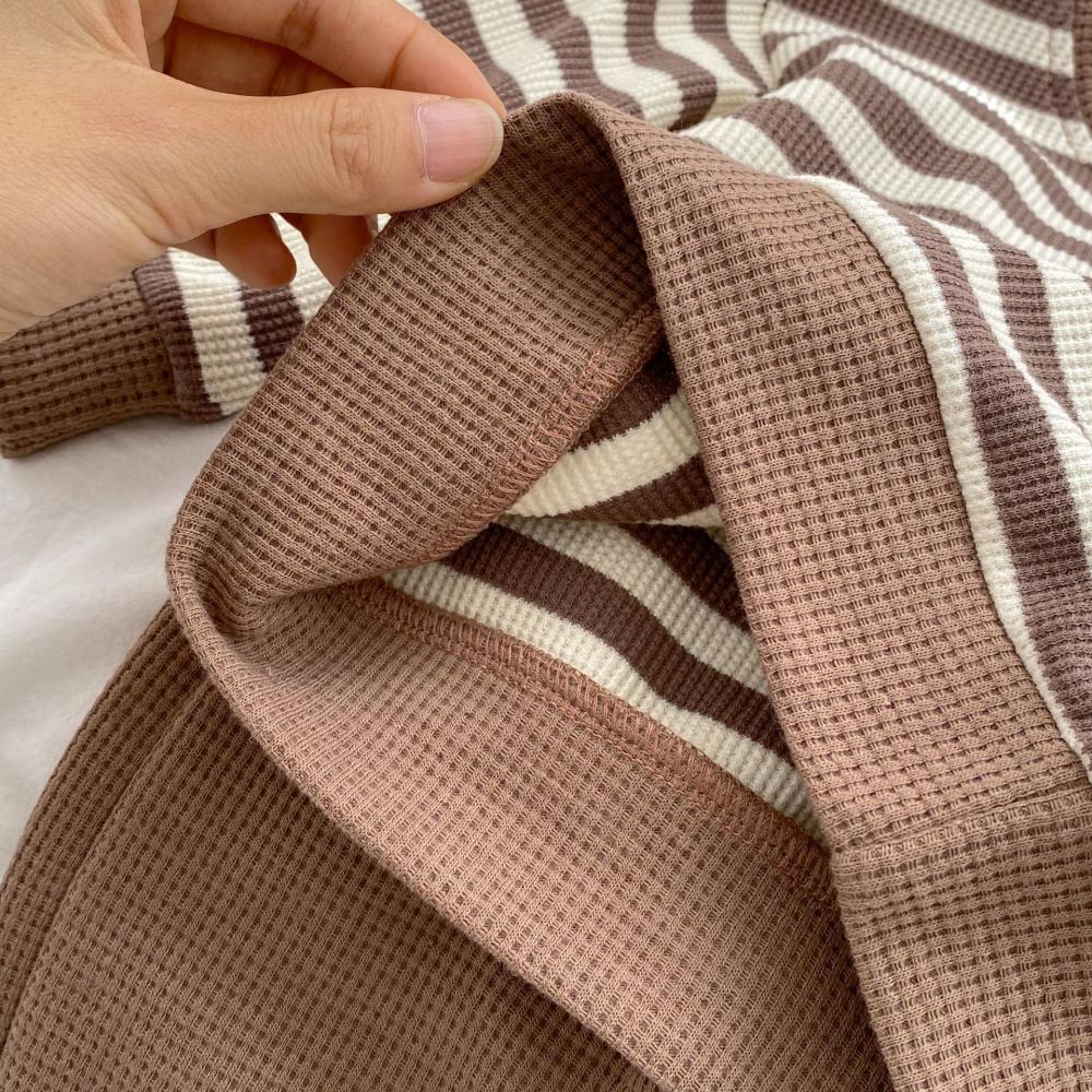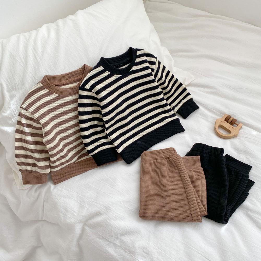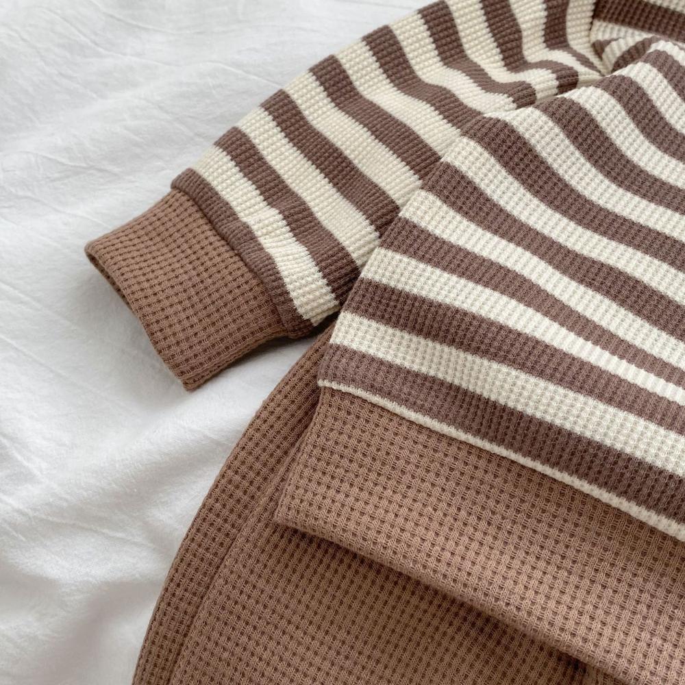 Spring Baby Suit For Boys And Girls Color Matching Striped Waffle Long Sleeve Top Pants Set Wholesale