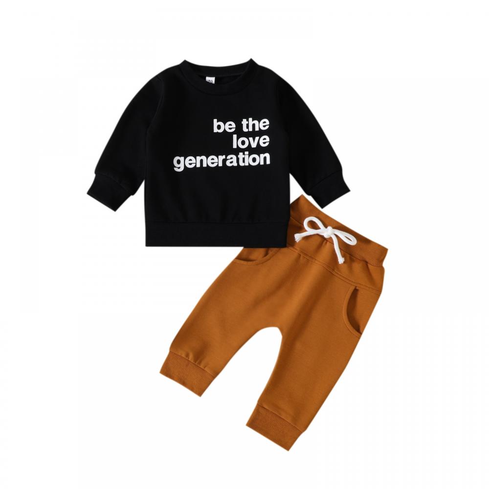 Spring Boy Letter Printed Jacket Pocket Pants Set Wholesale Boys Clothes