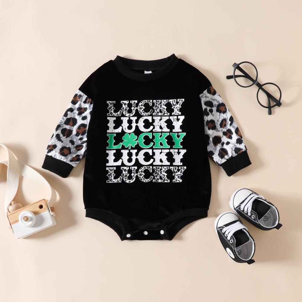 St. Patrick's Day Baby Jumpsuit Children's Letter Printing Color Matching Romper Wholesale Baby Clothes