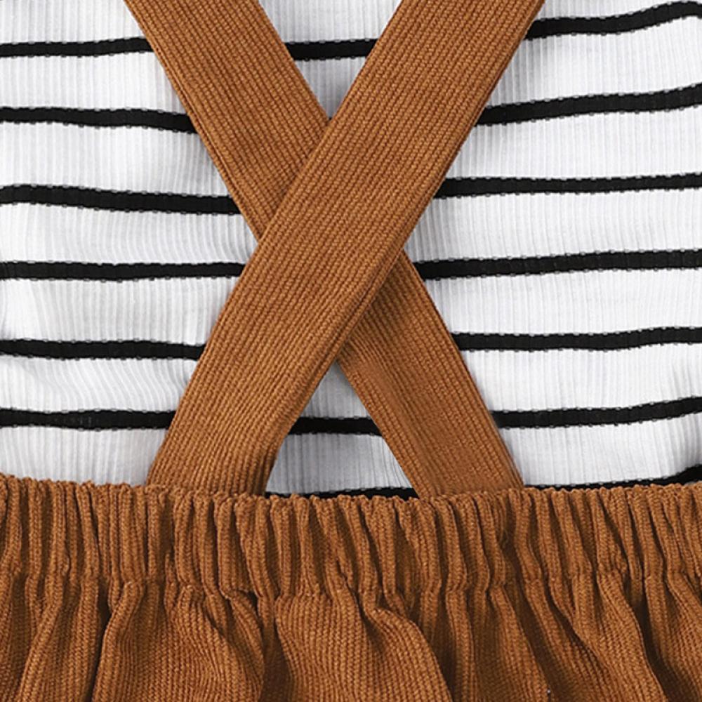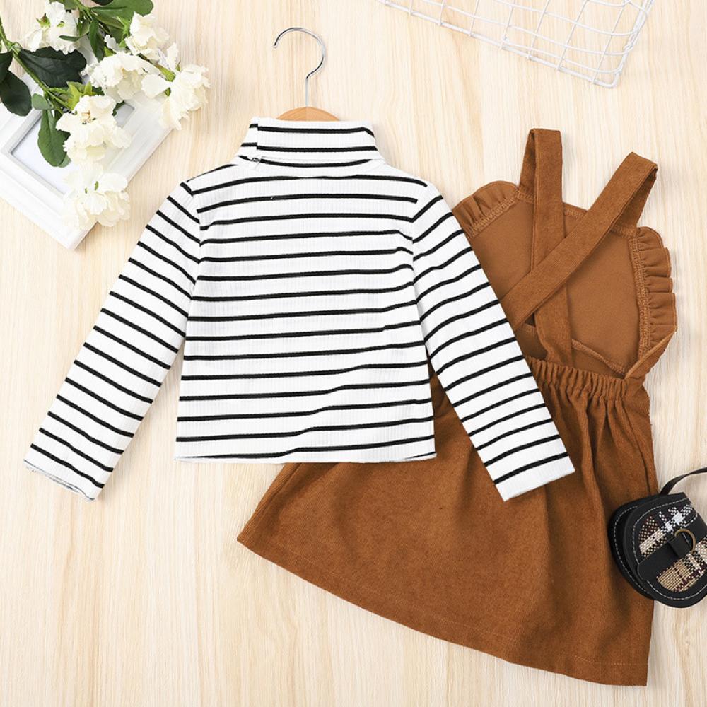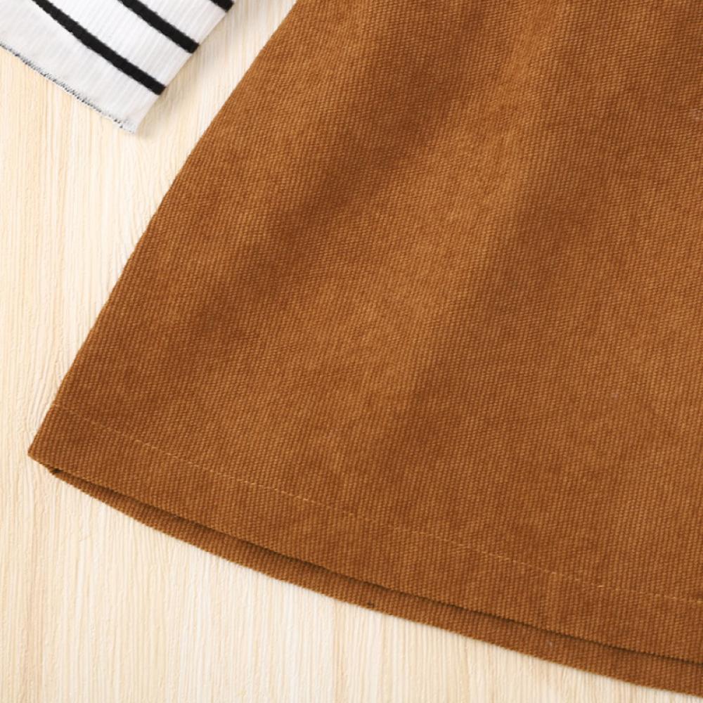 Striped Long Sleeve Brown Sling Midi Skirt Set Wholesale Girls Clothes