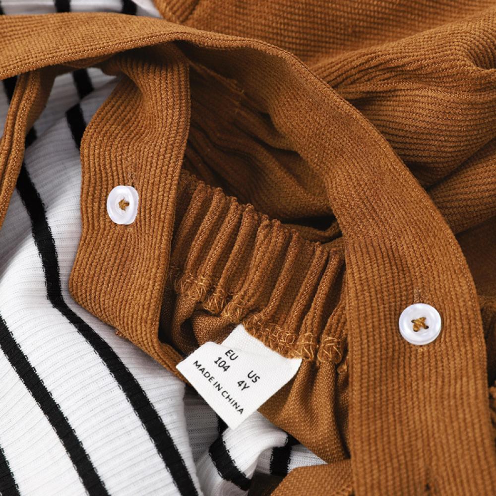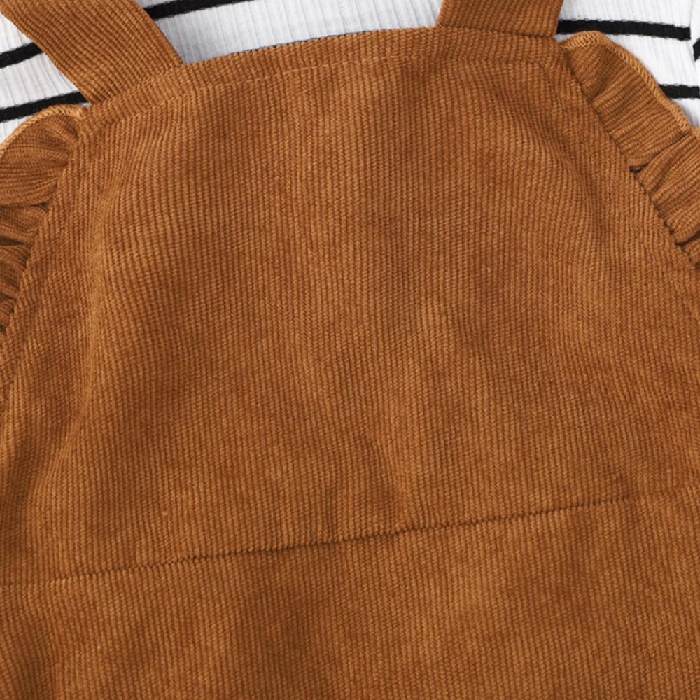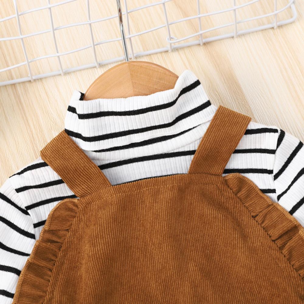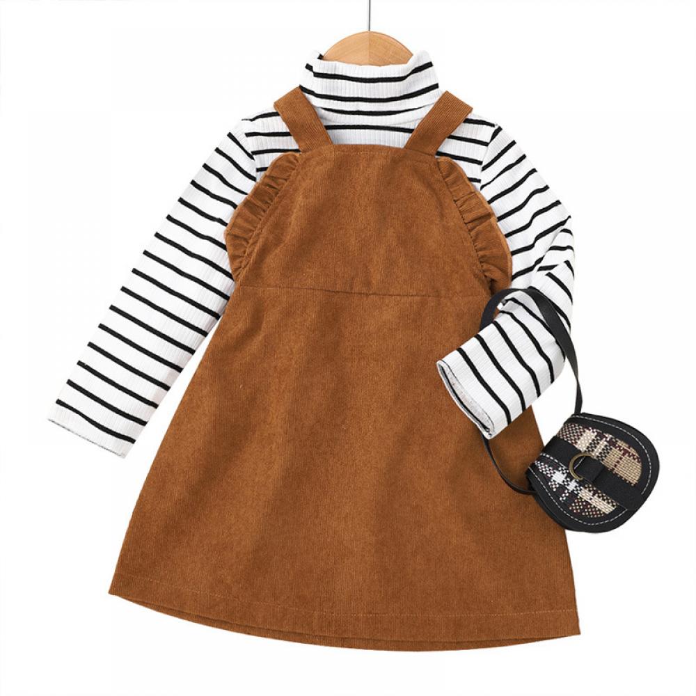Striped Long Sleeve Brown Sling Midi Skirt Set Wholesale Girls Clothes