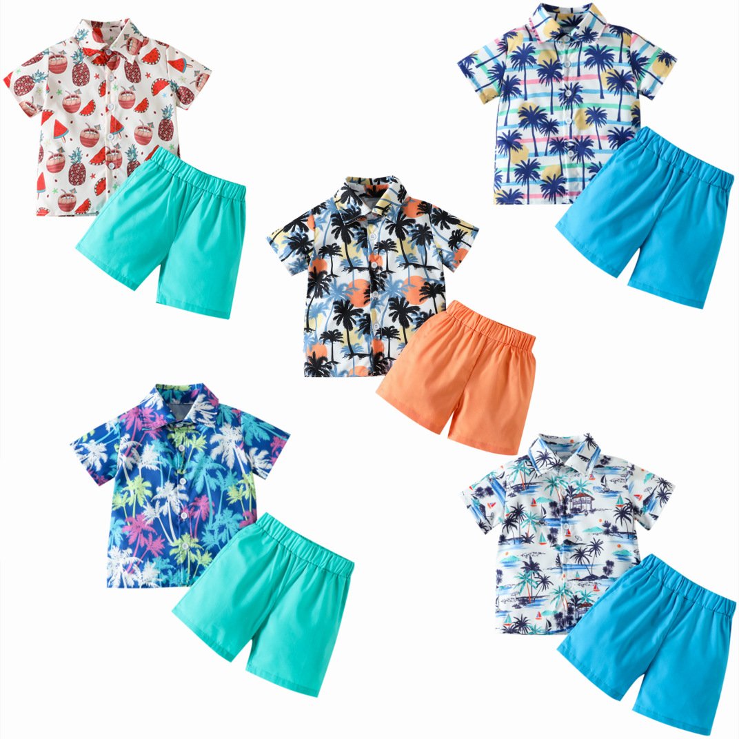 Summer Boys Holiday Style Seaside Vacation Printed Shirt Shorts Set Wholesale Boutique Clothing