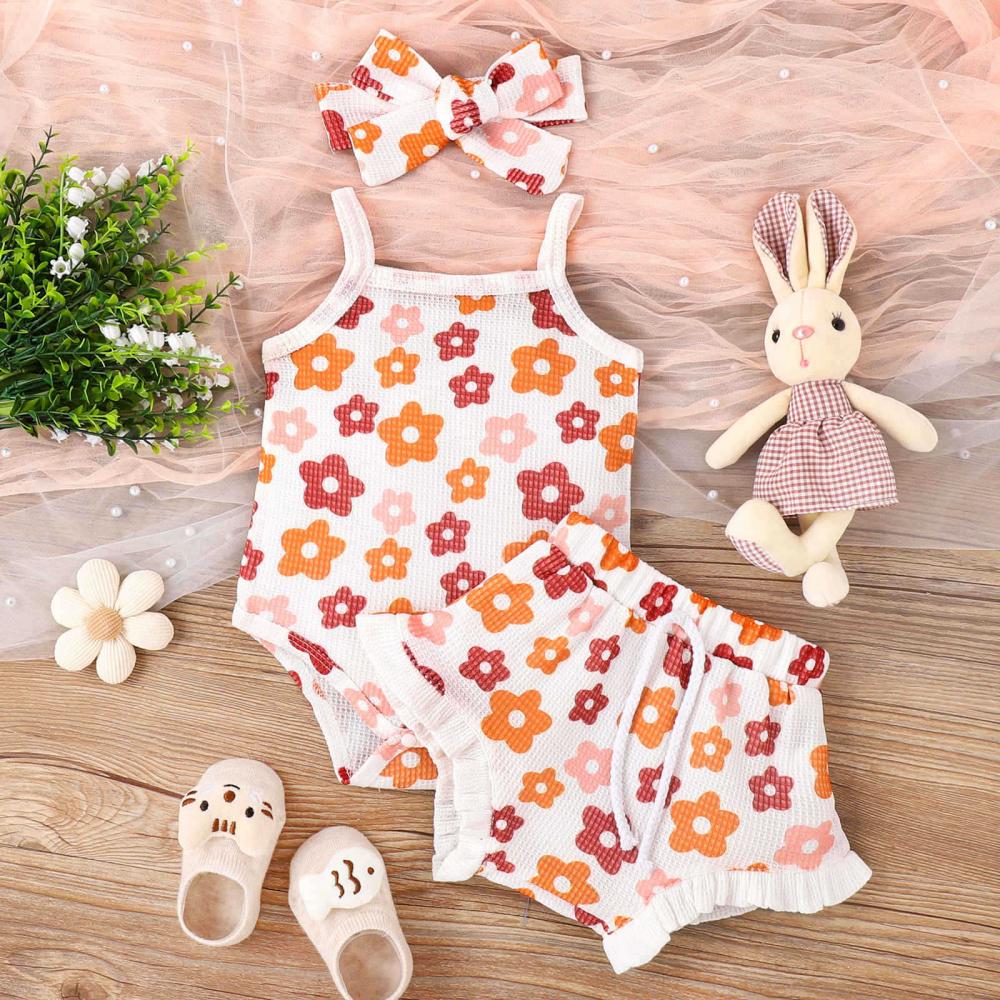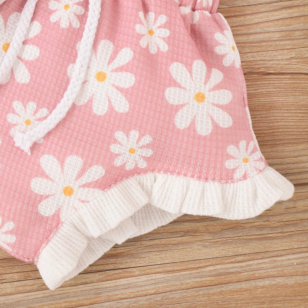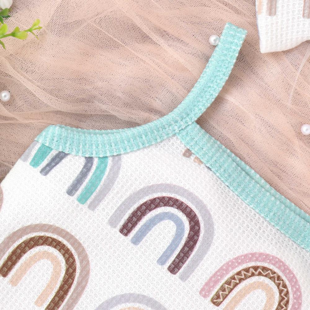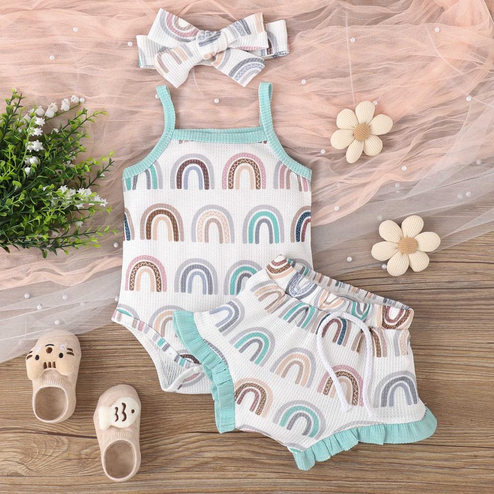 Summer Girls Cute Rainbow Flower Condole Belt Lace Shorts Baby Set Wholesale Baby Clothing