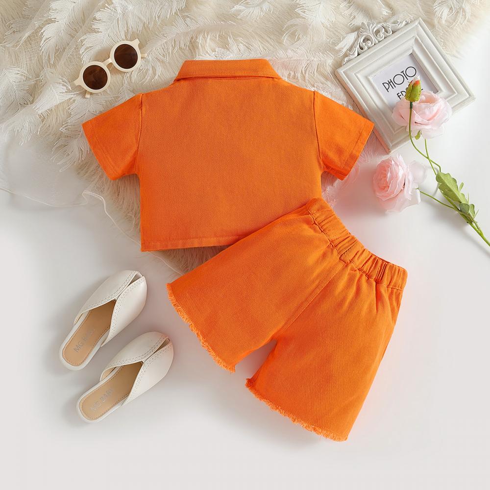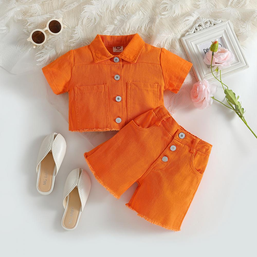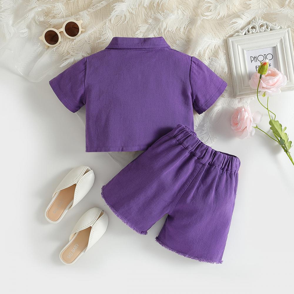Summer Girls' Solid Denim Short Sleeve Set Wholesale Girls Clothing