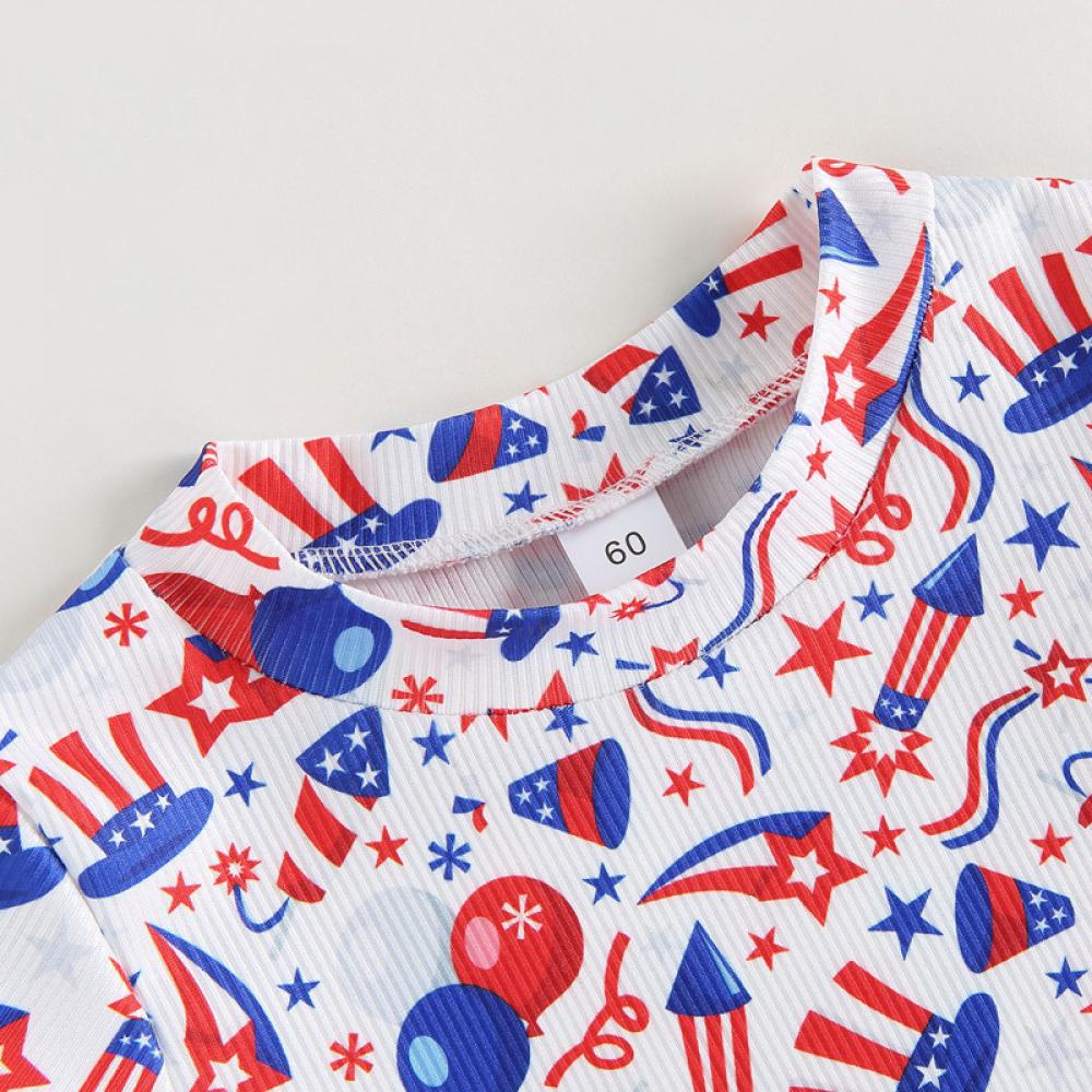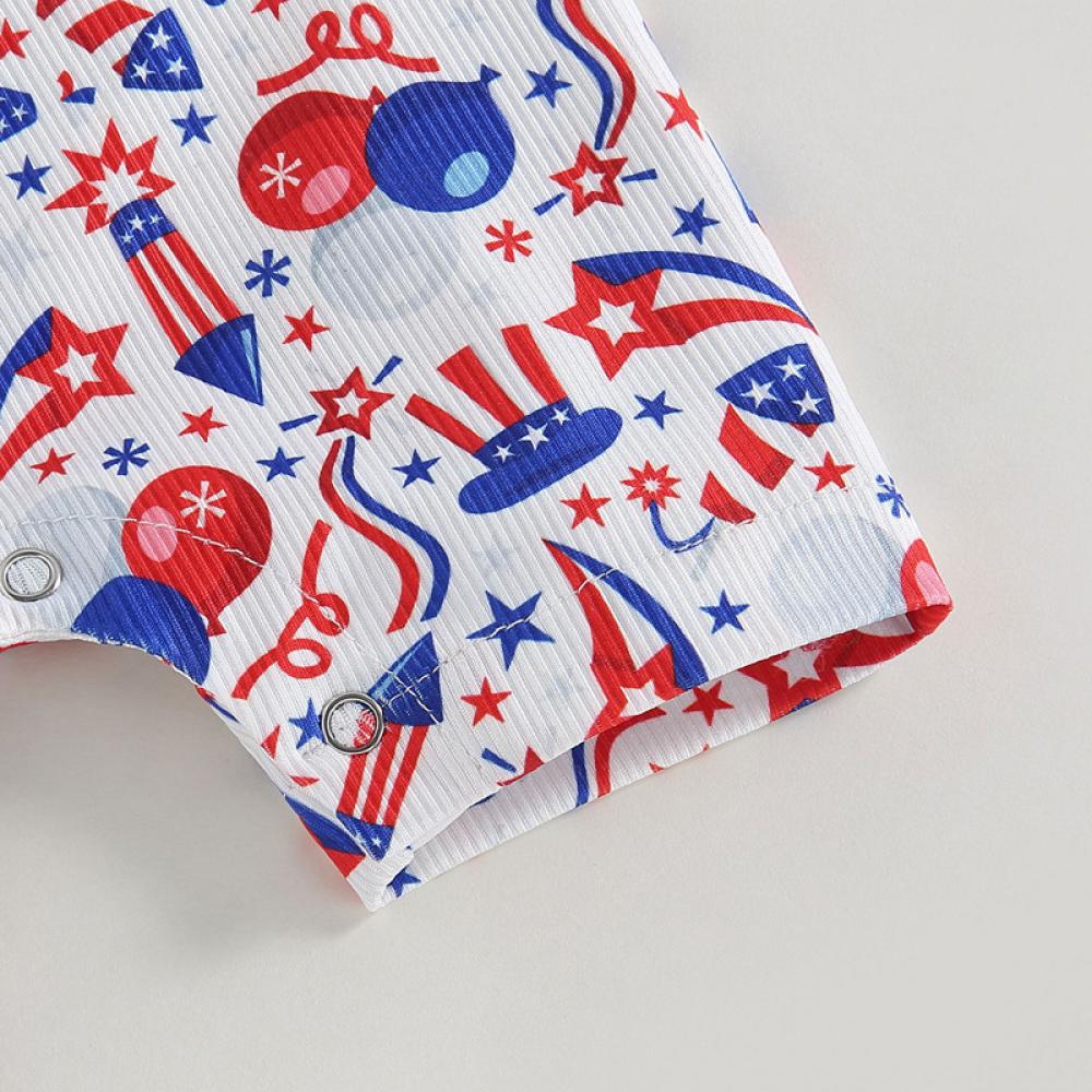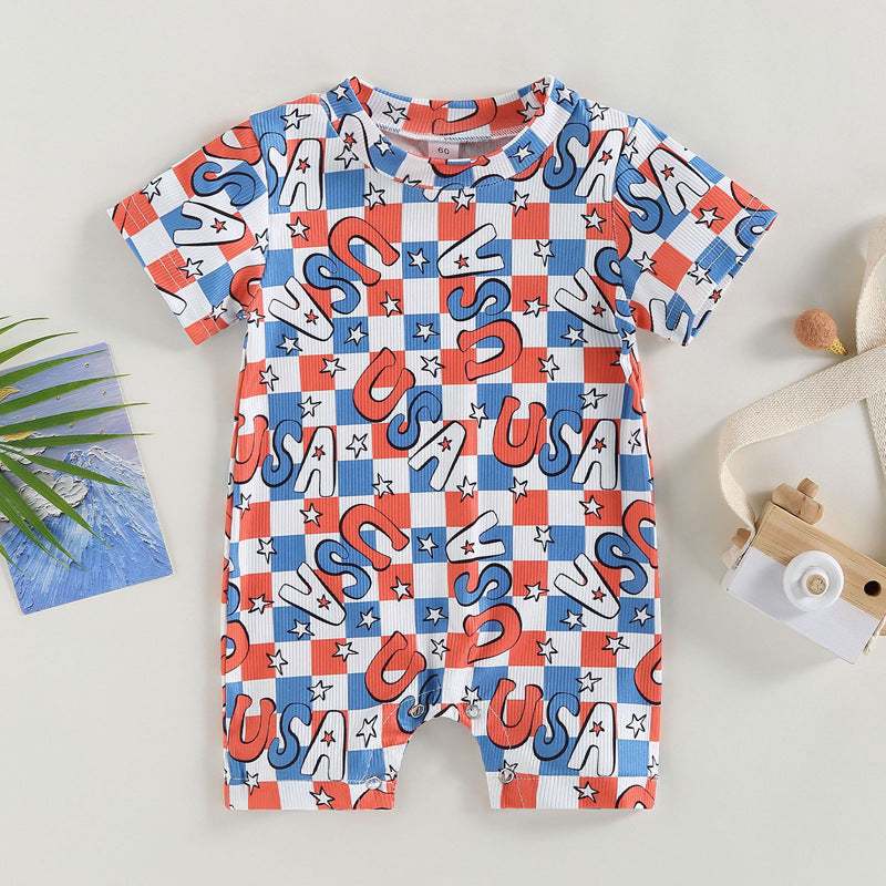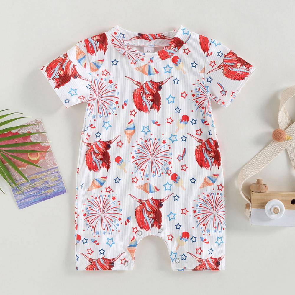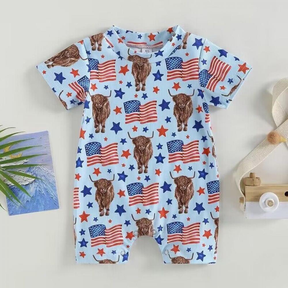 Summer Independence Day Boys Girls Short Sleeve Cow Letter Jumpsuit Baby Clothes In Bulk