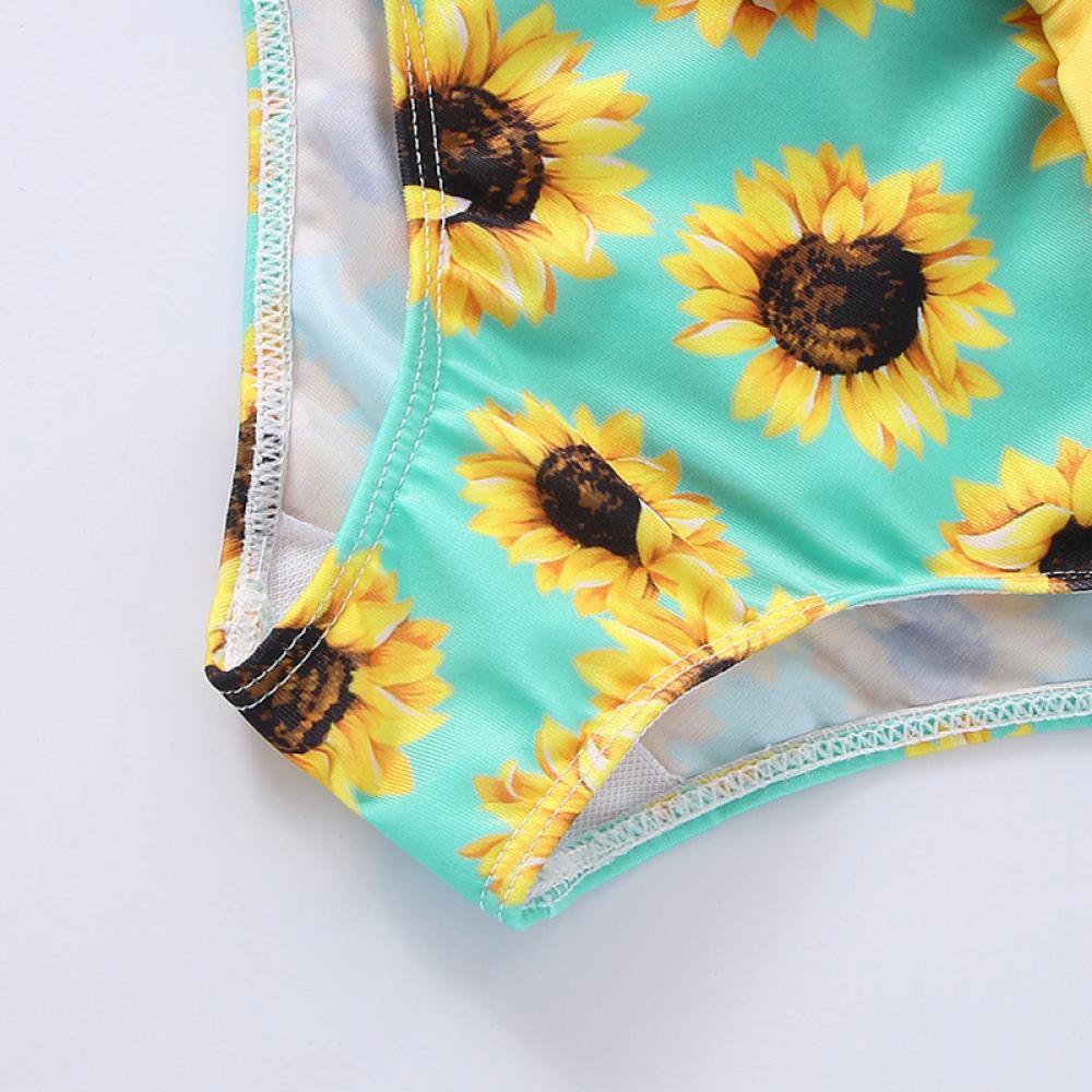 Yellow Sling Multicolor Sunflower Print Children's Swimsuit Wholesale