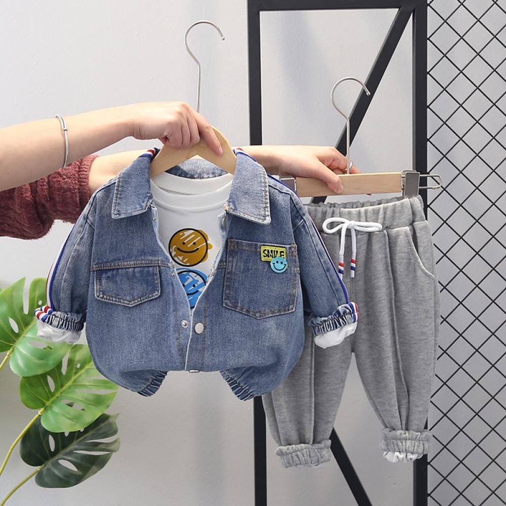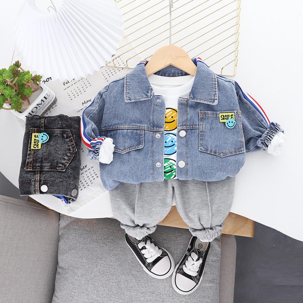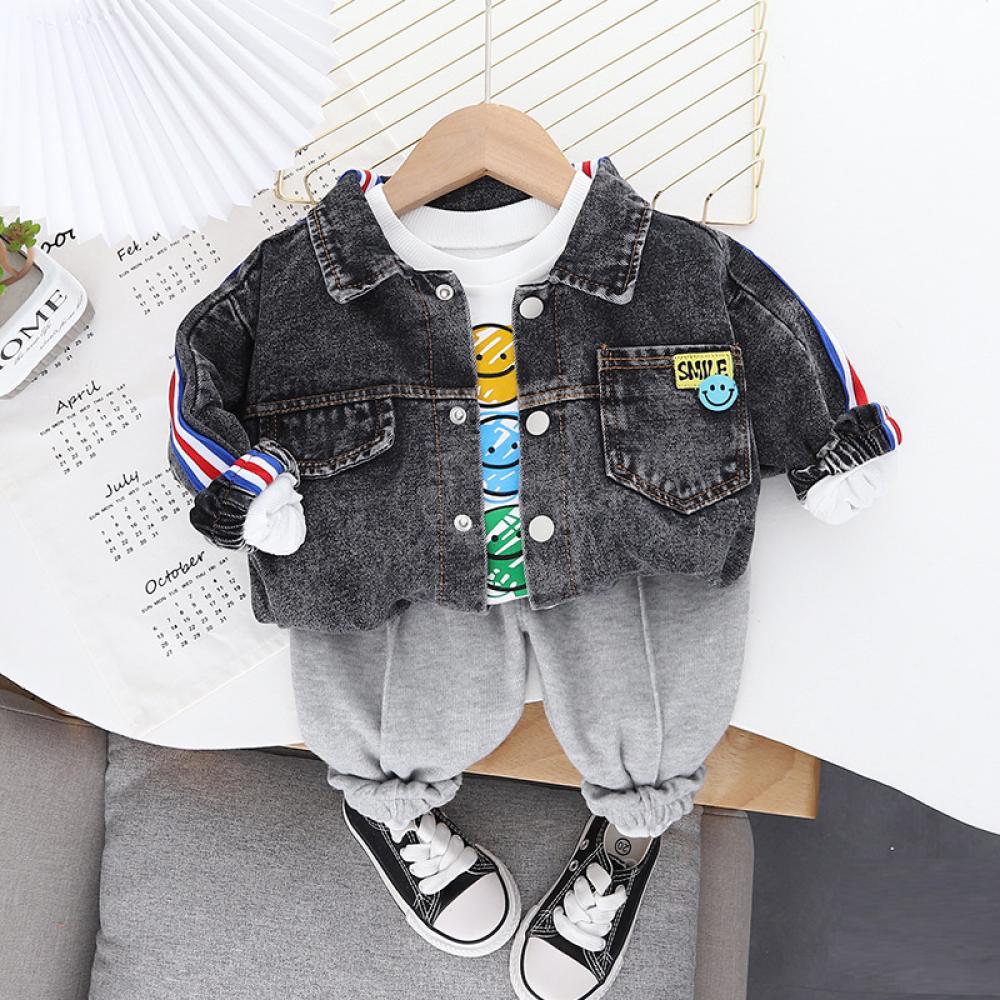 1-5T Boys Spring and Autumn Girls Western Style Long Sleeve Casual Three-piece Set Wholesale