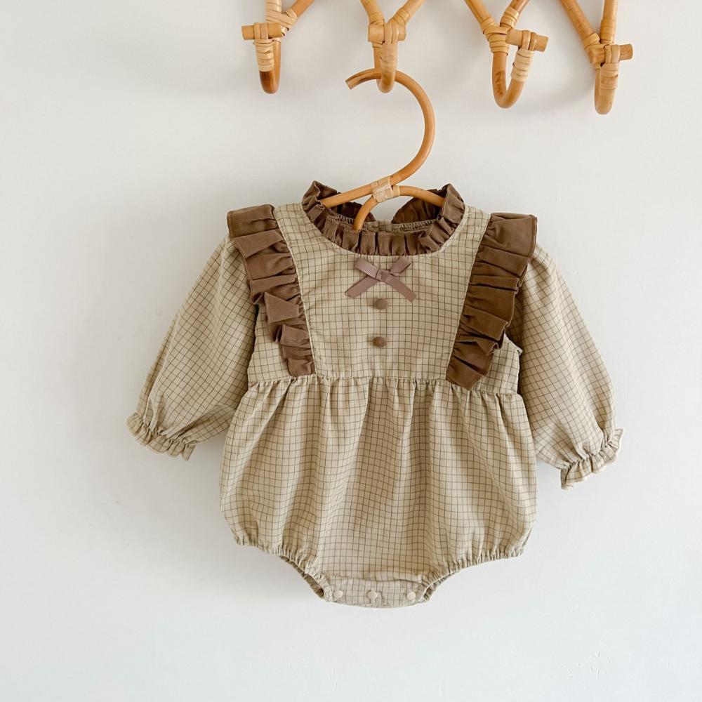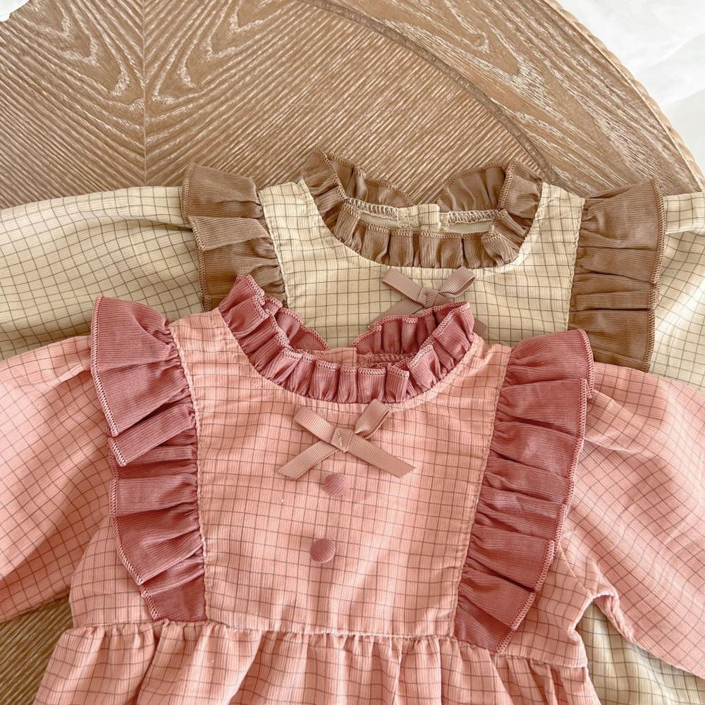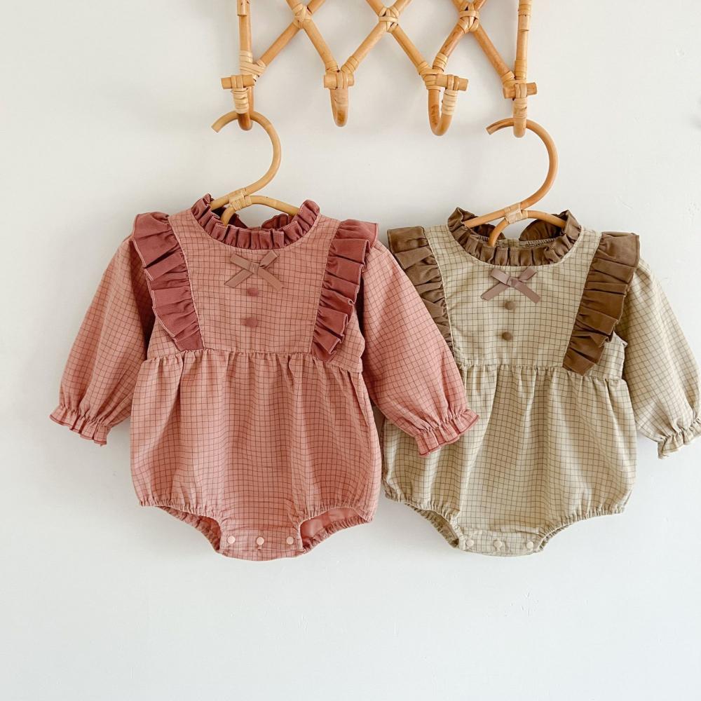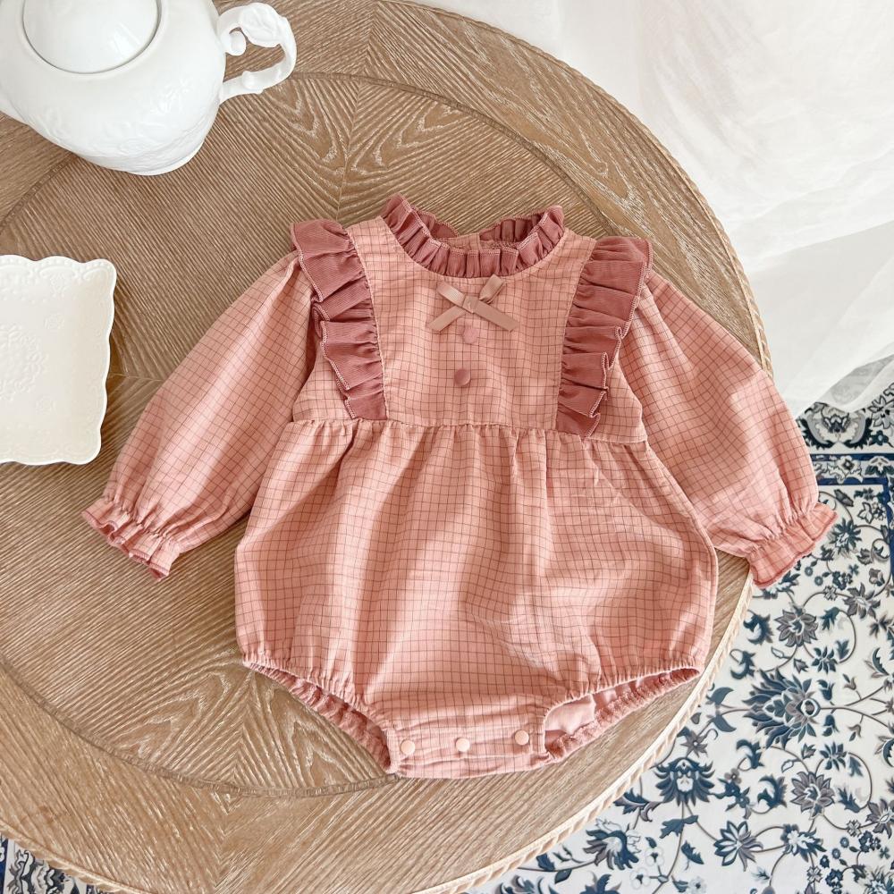Autumn Baby Girl Corduroy Plaid Bow Romper Wholesale Baby Clothes