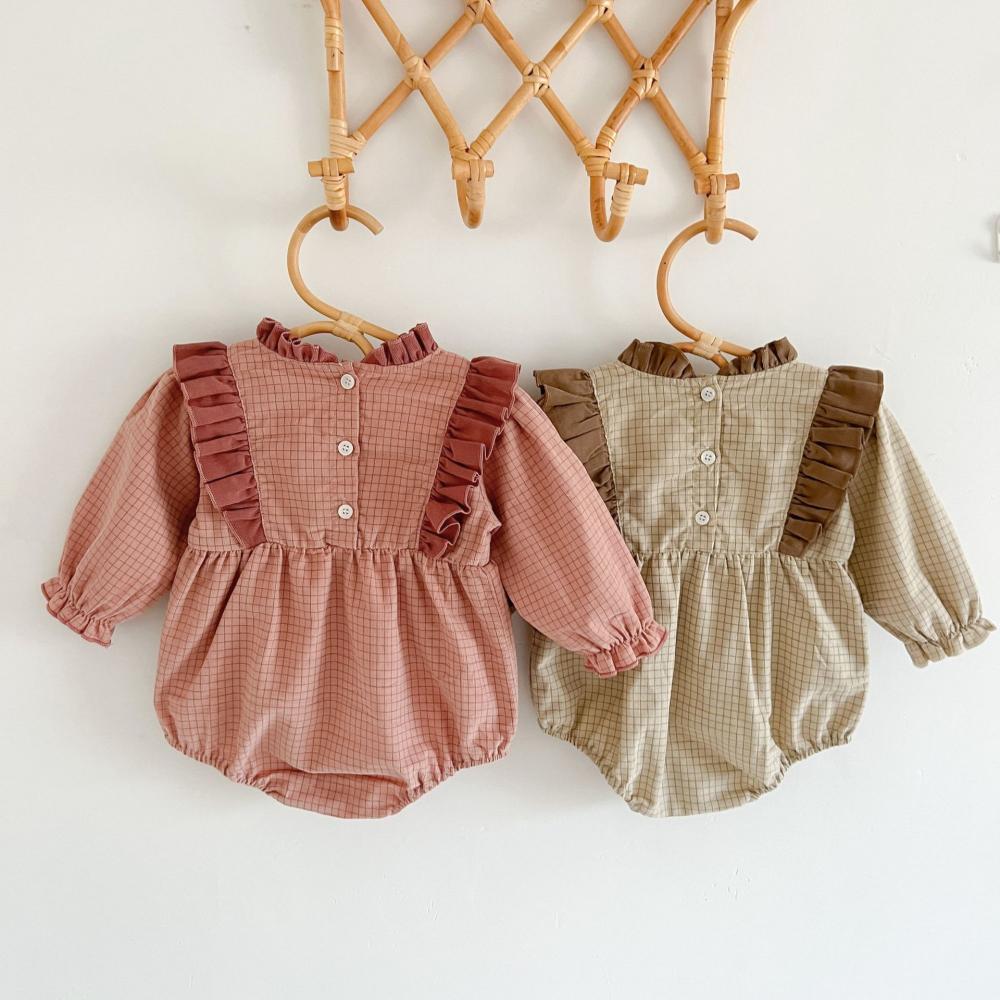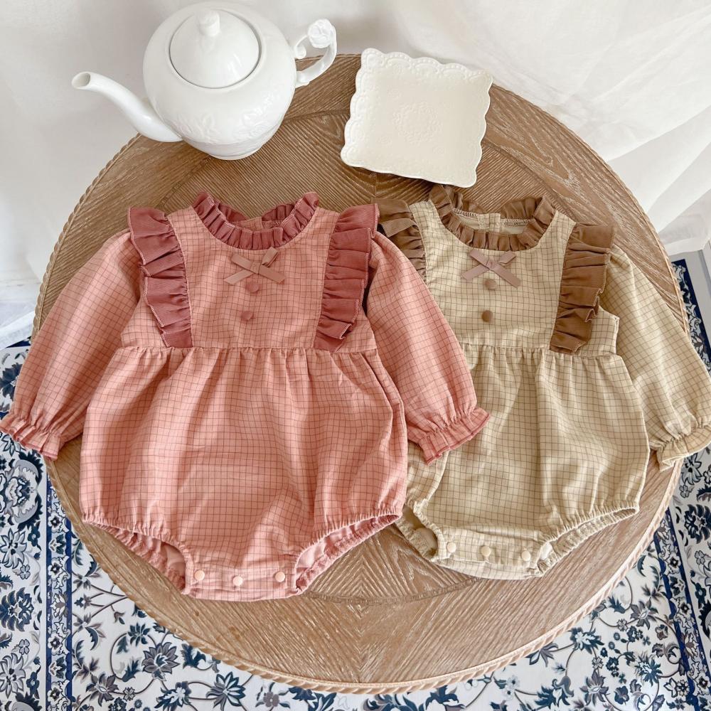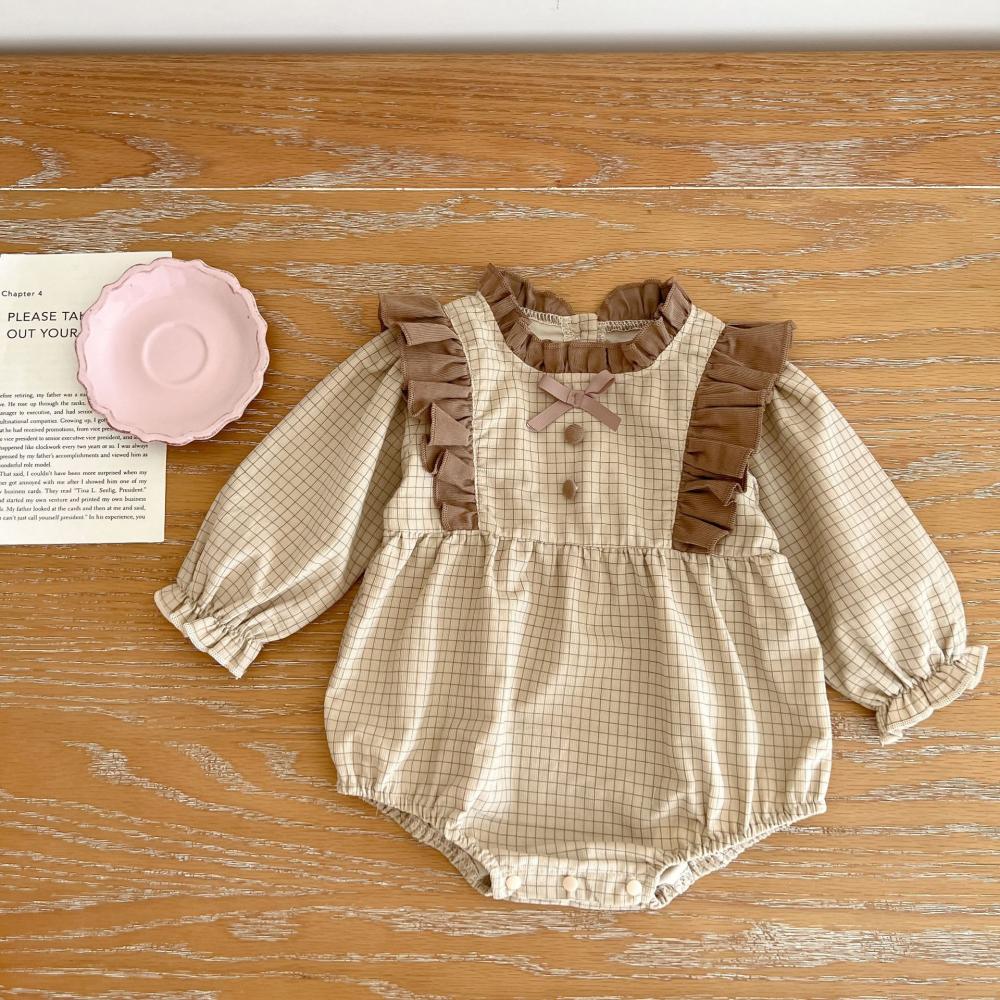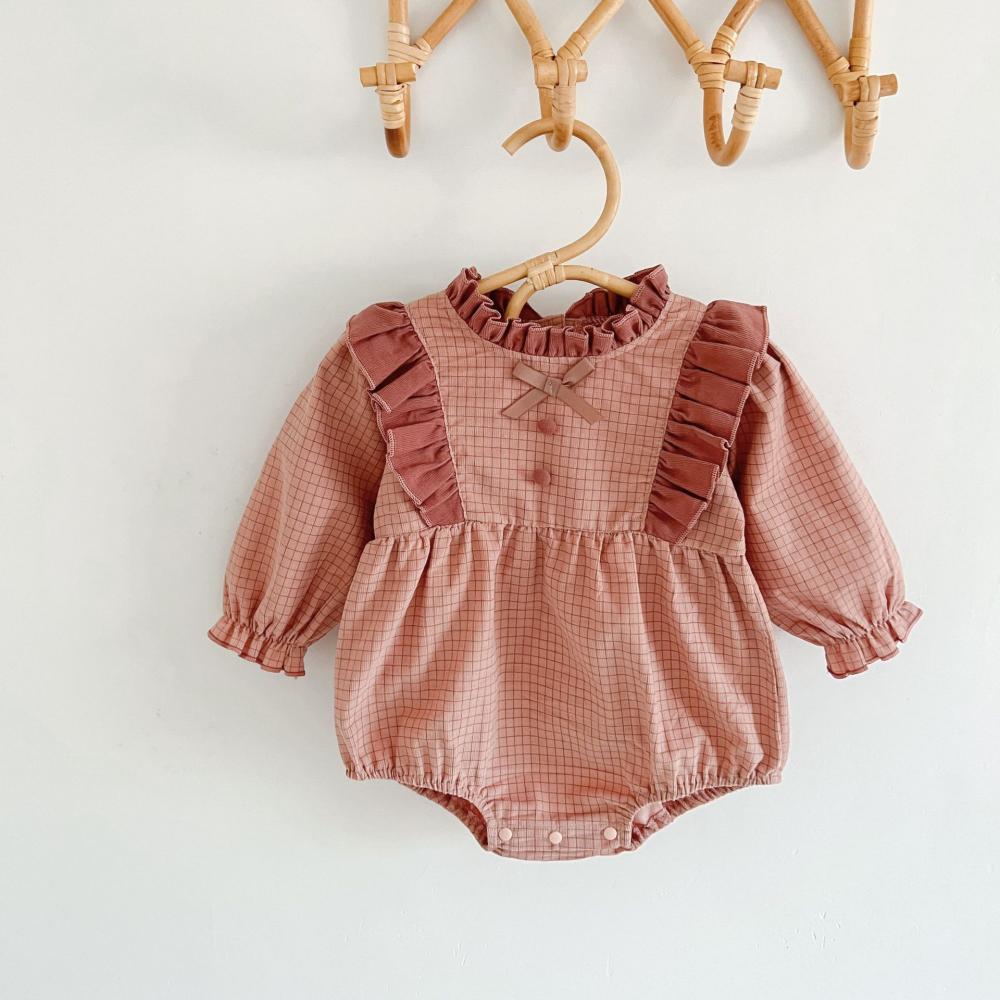 Autumn Baby Girl Corduroy Plaid Bow Romper Wholesale Baby Clothes