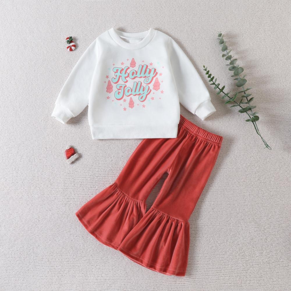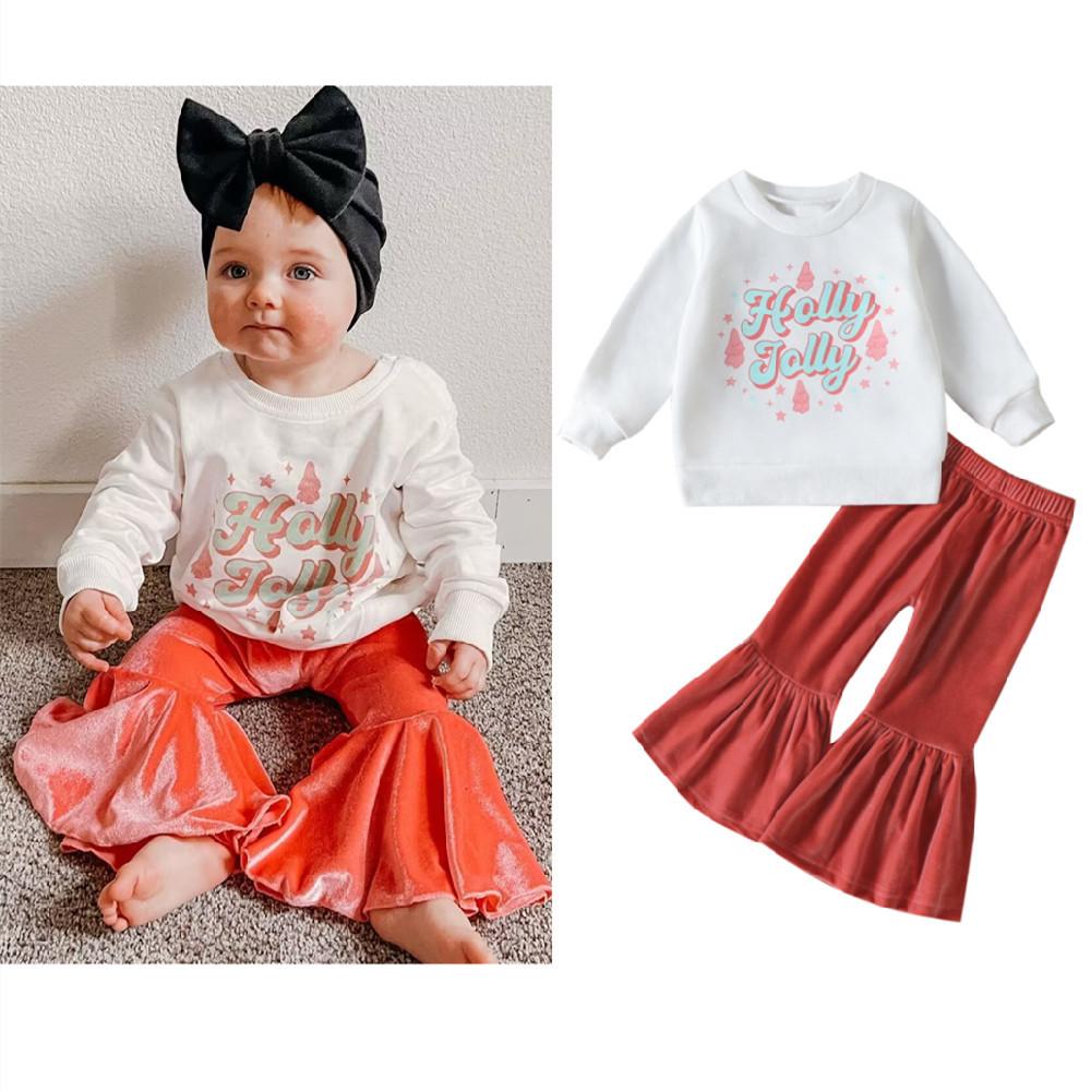 Autumn Baby Girls Long-sleeve Letter Sweater + Flared Pants Set Wholesale Girls Clothes