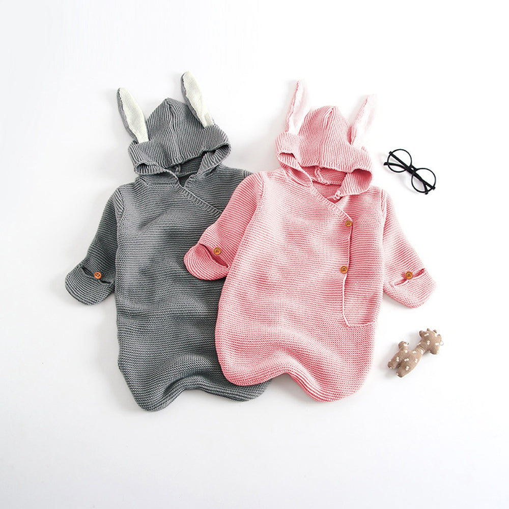 Baby Autumn And Winter Bunny Style Solid Color Knitted Sleeping Bag Holding Blanket Baby Blankets Wholesalers