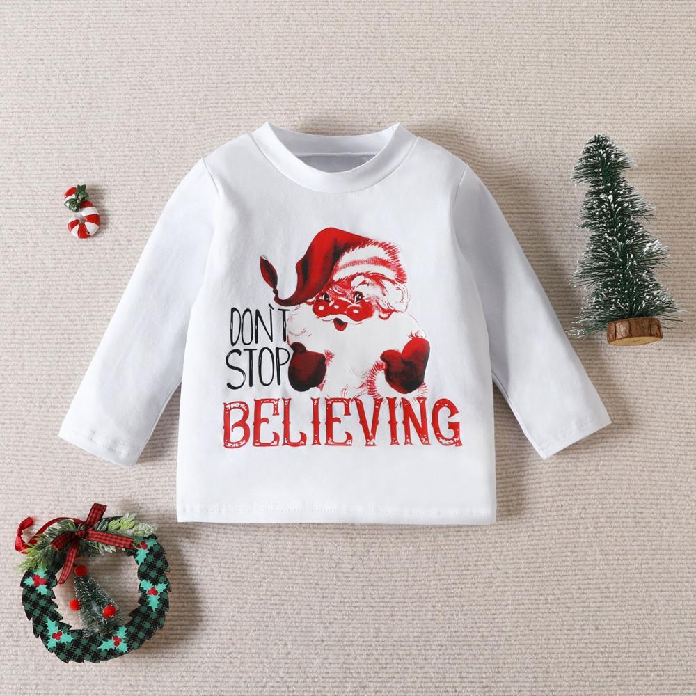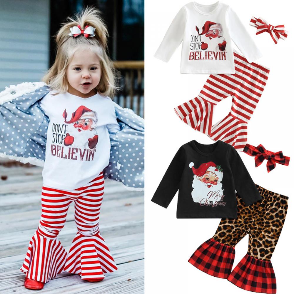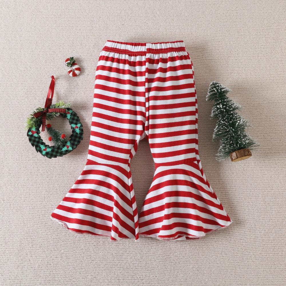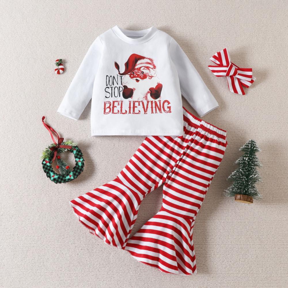 Baby Girls Christmas Autumn Cartoon Santa Stripe Shirt + Flared Pants Set Wholesale Girls Clothes