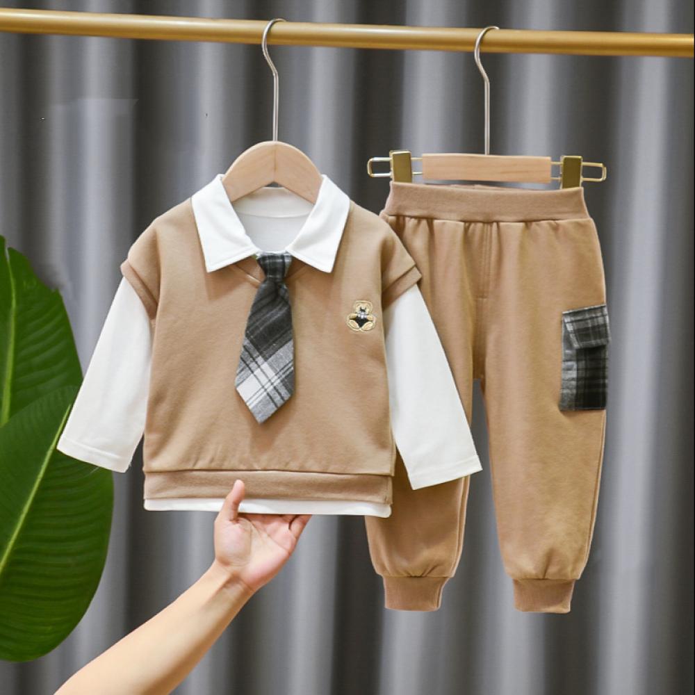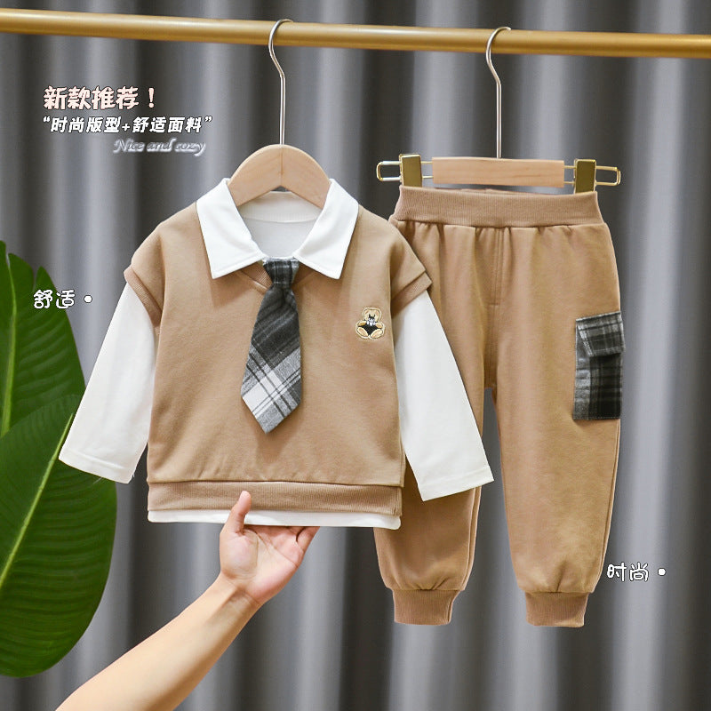 Boys Auutmn Top and Vest and Pants Set Boys School Uniform