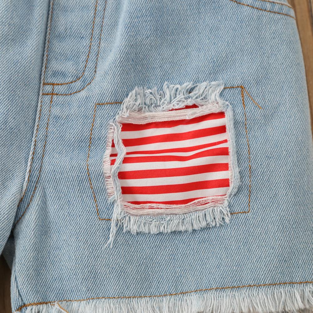 Children's Independence Day Girls' Star Print Sling Hairband Denim Shorts Three Piece Set Wholesale