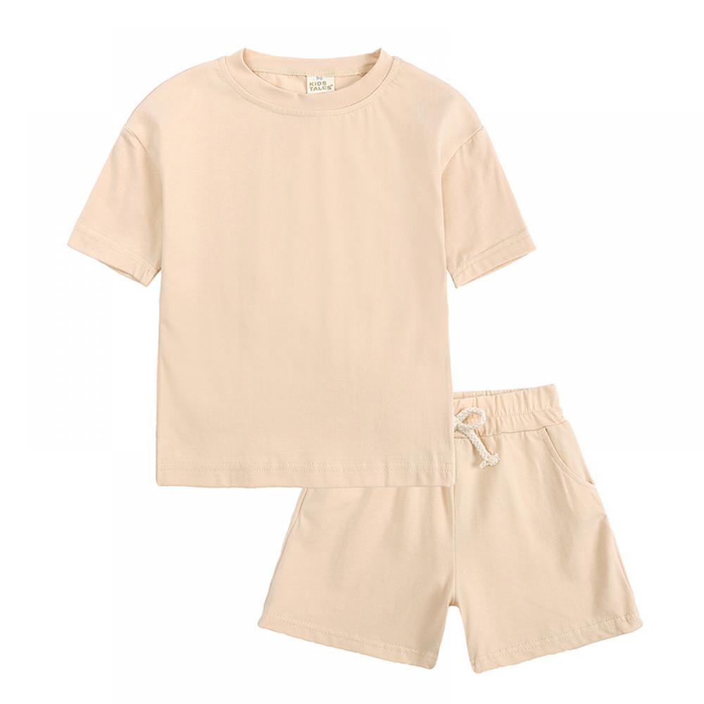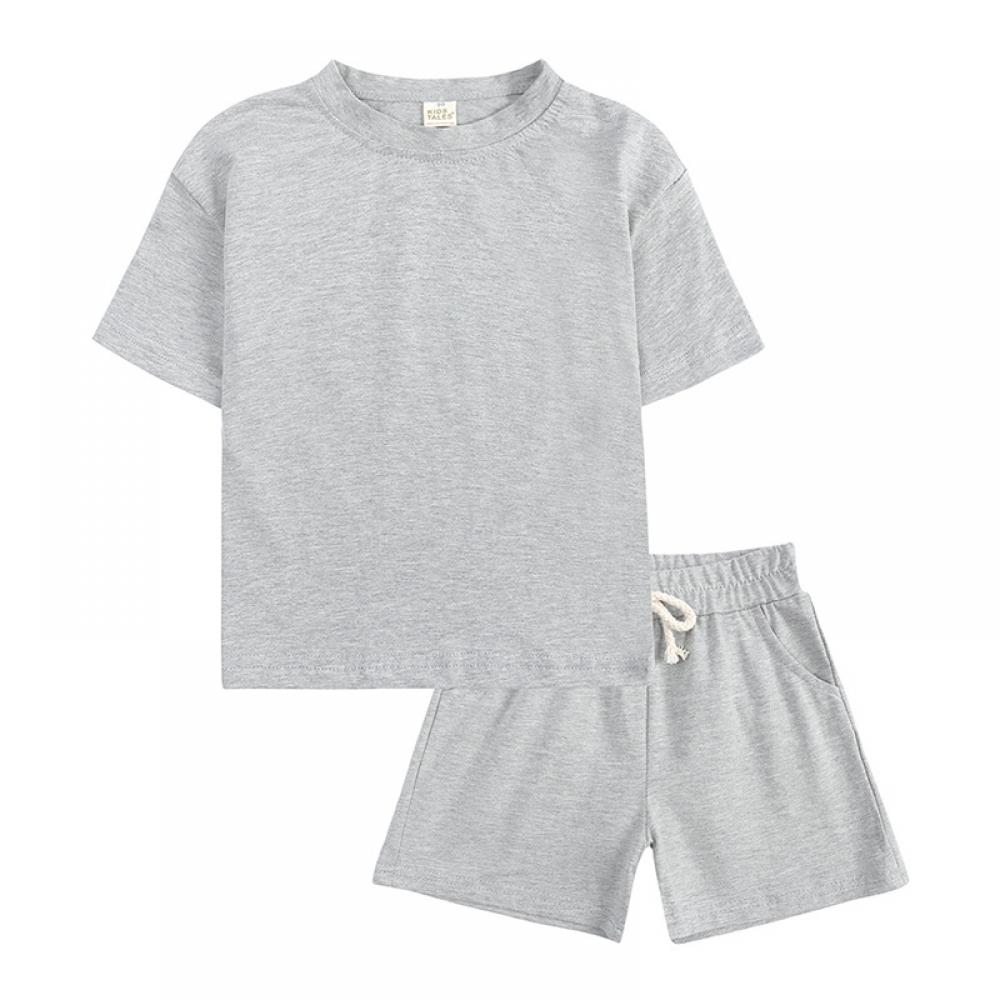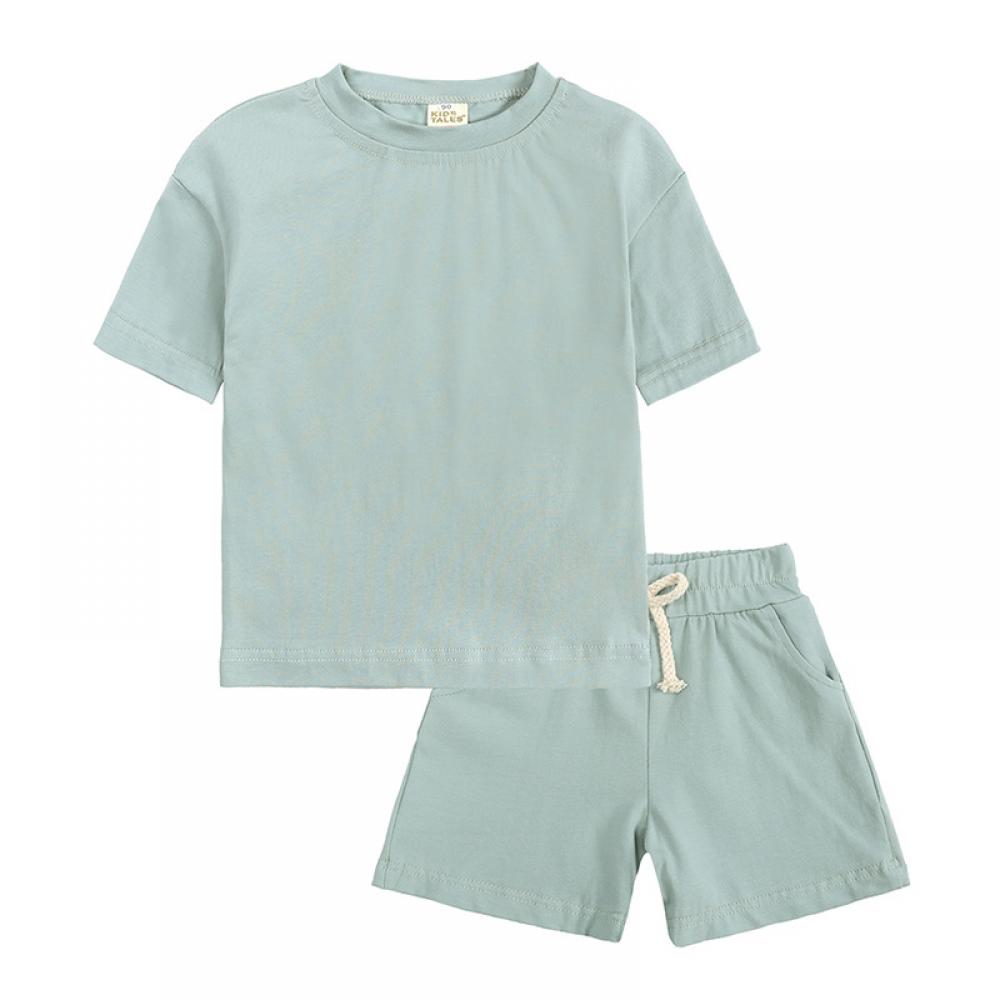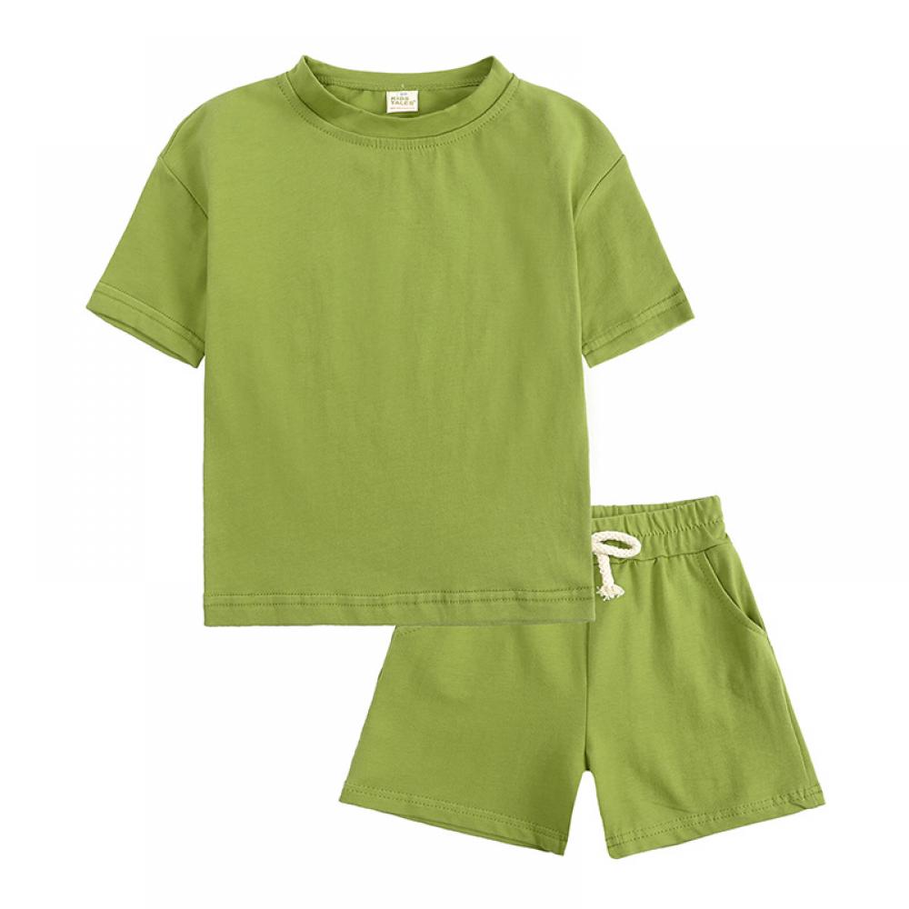Children's Short Sleeve Set Boys' and Girls' Summer Sports Solid Color Set Wholesale Kids Clothing