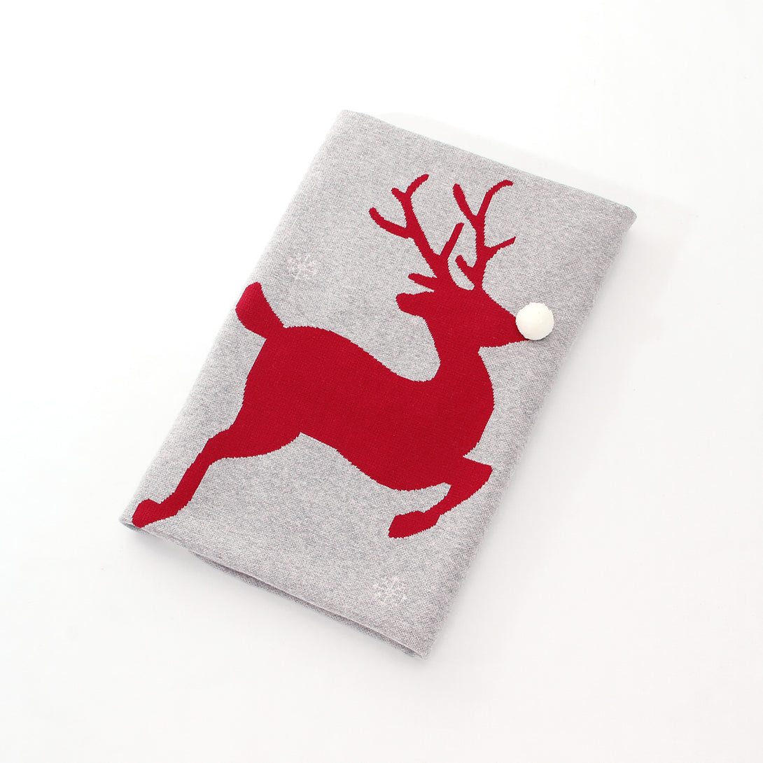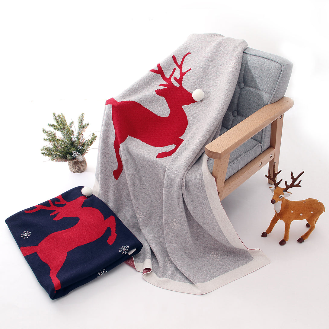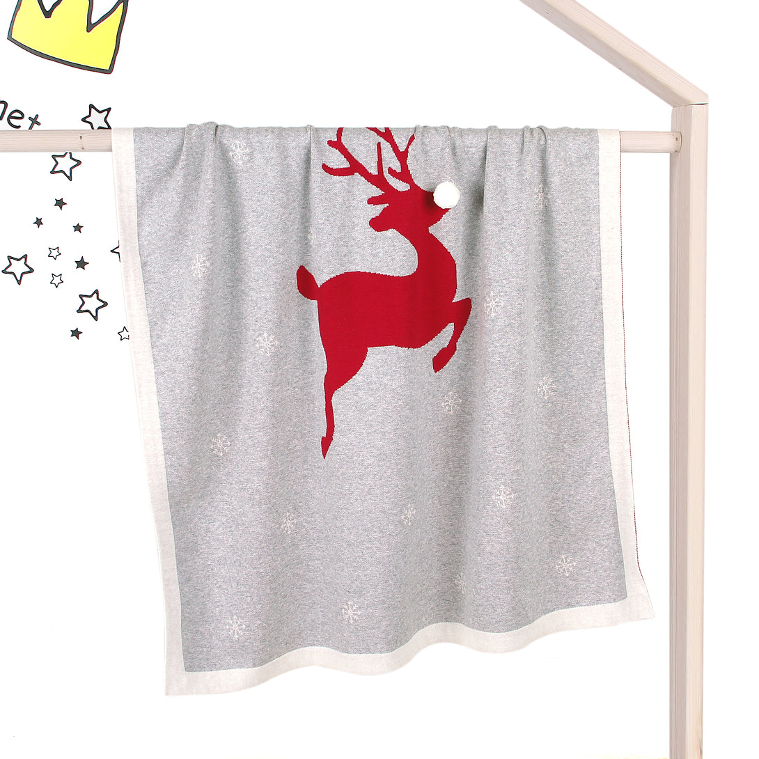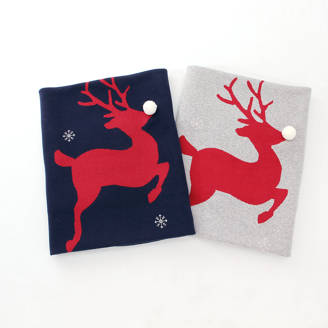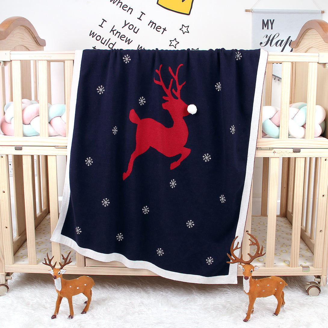 Christmas Elk Printed Wool Ball Solid Color Holding Blanket Cute Baby Blankets