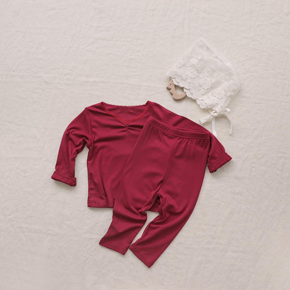 Girls Lace Collar Pajamas Set Spring And Autumn Wholesale Baby Clothes