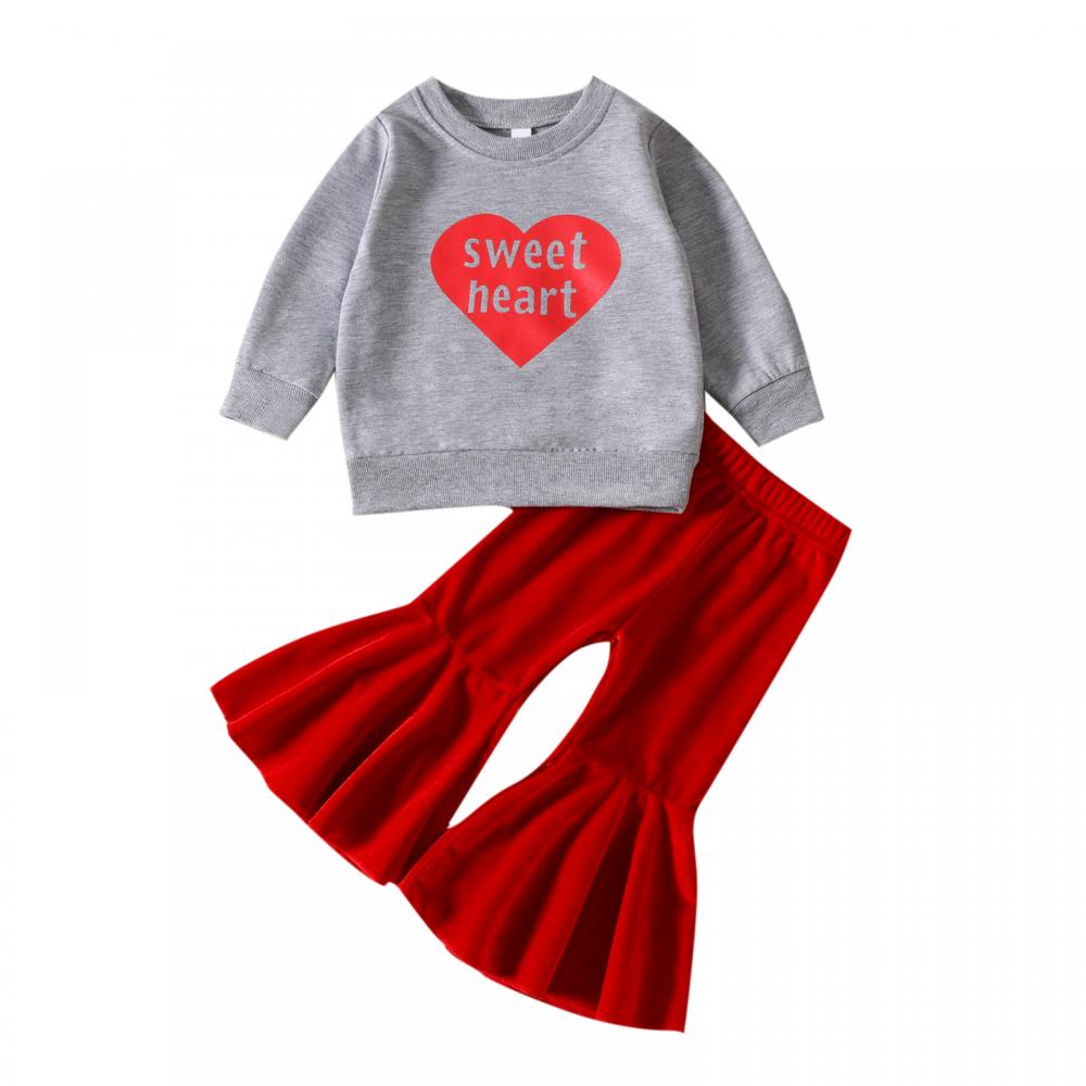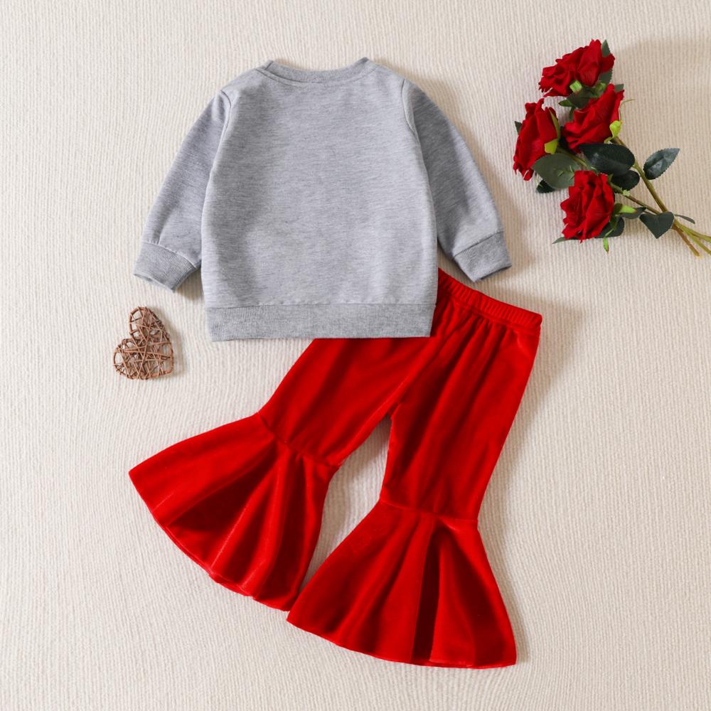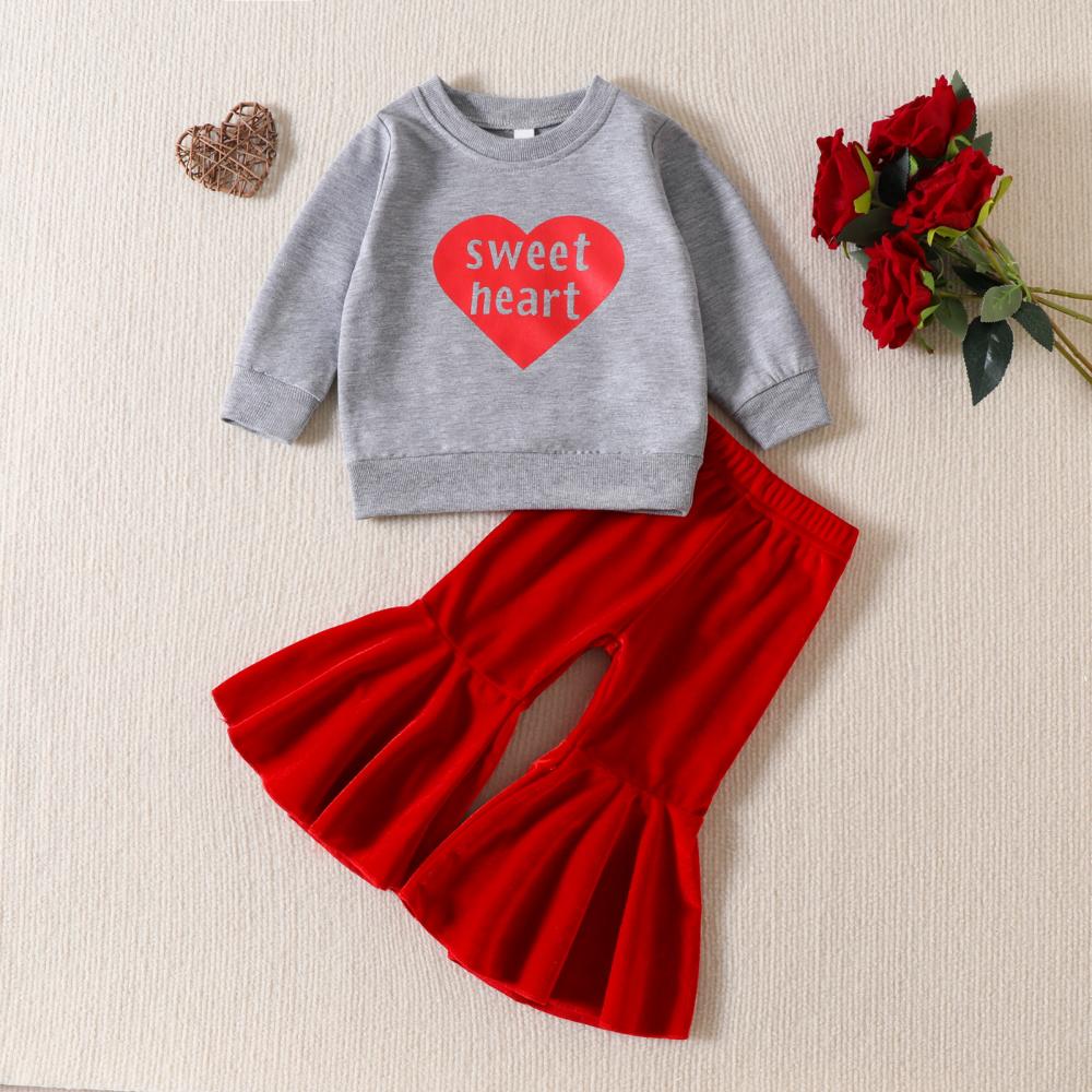 Girls' Valentine's Day Suit Love Printed Wear Flared Pants Suit Wholesale Girls Clothes
