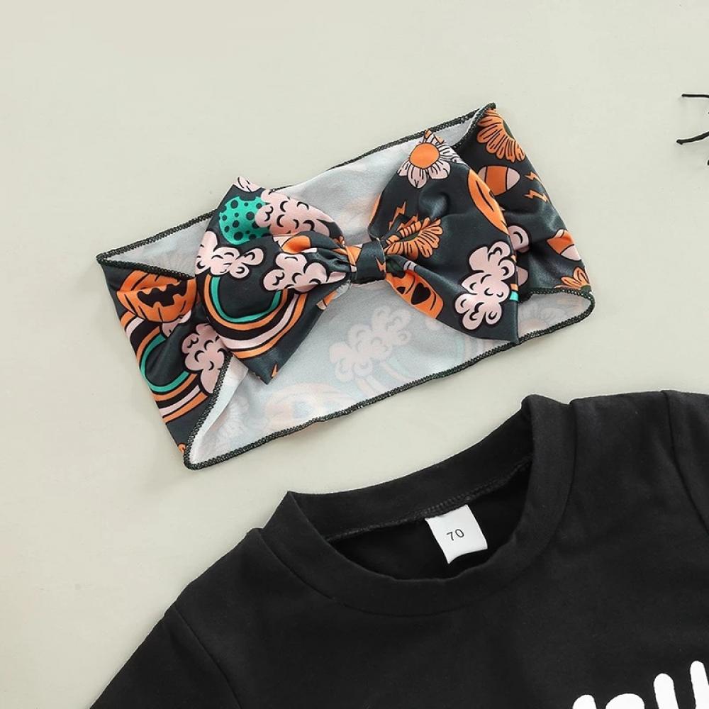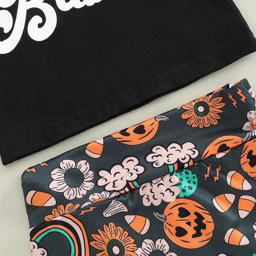Halloween Letter Print Top Cartoon Pattern Shorts Girls Suit Wholesale