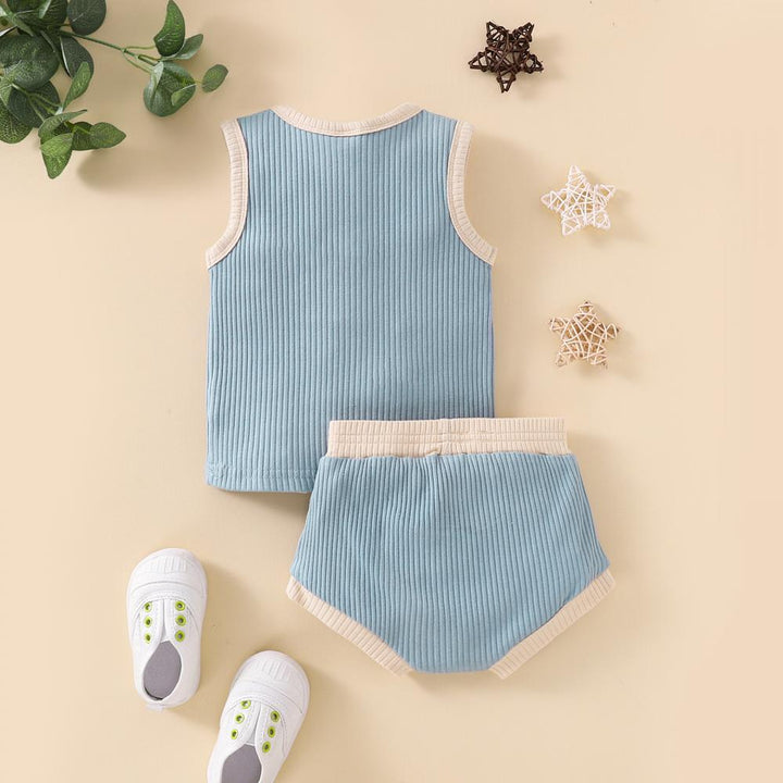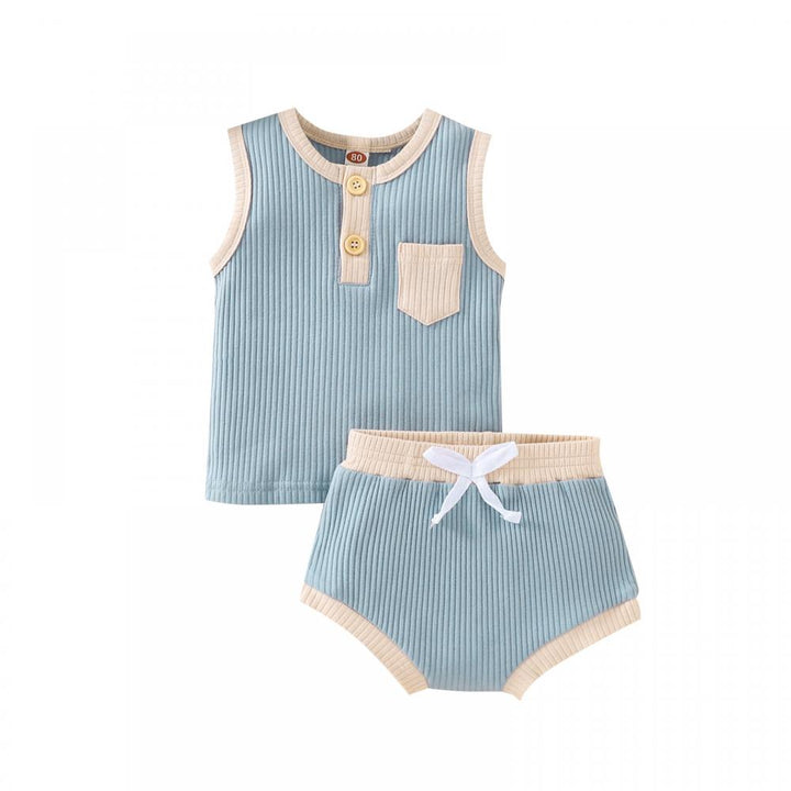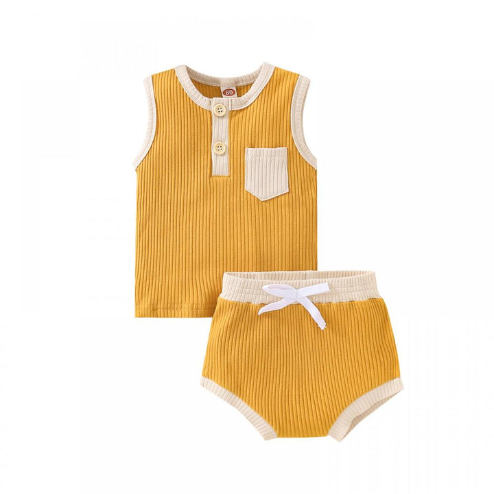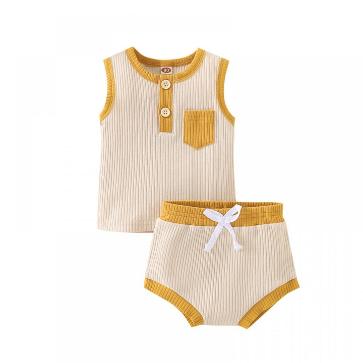 Neutral Unisex Baby Set Summer Sleeveless Pocket Tank Top and Shorts Casual buy baby clothes in bulk for resale