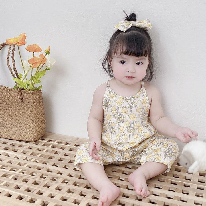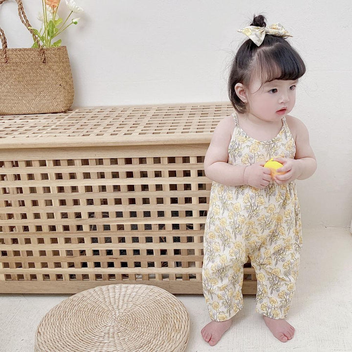 Newborn Baby Girls Summer Romper Sleeveless Floral Sling Jumpsuit 100% Organic Cotton Baby Wholesales