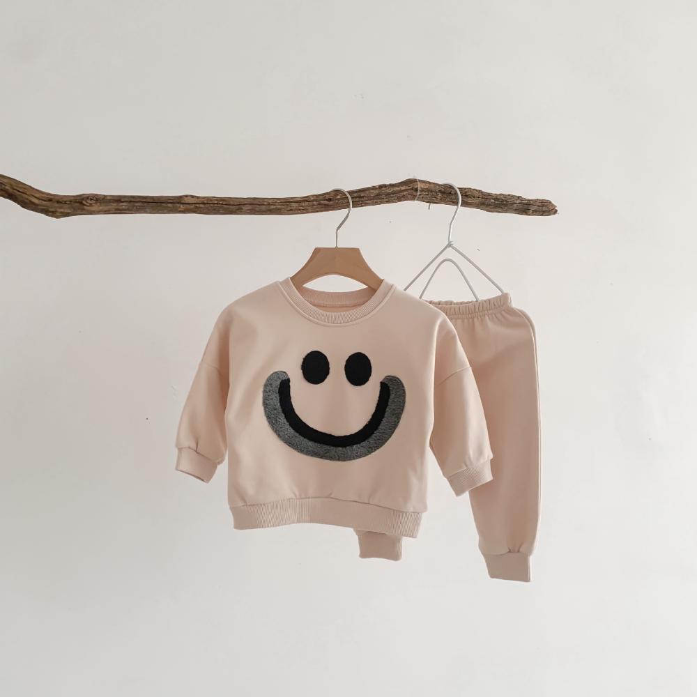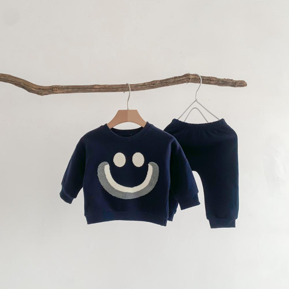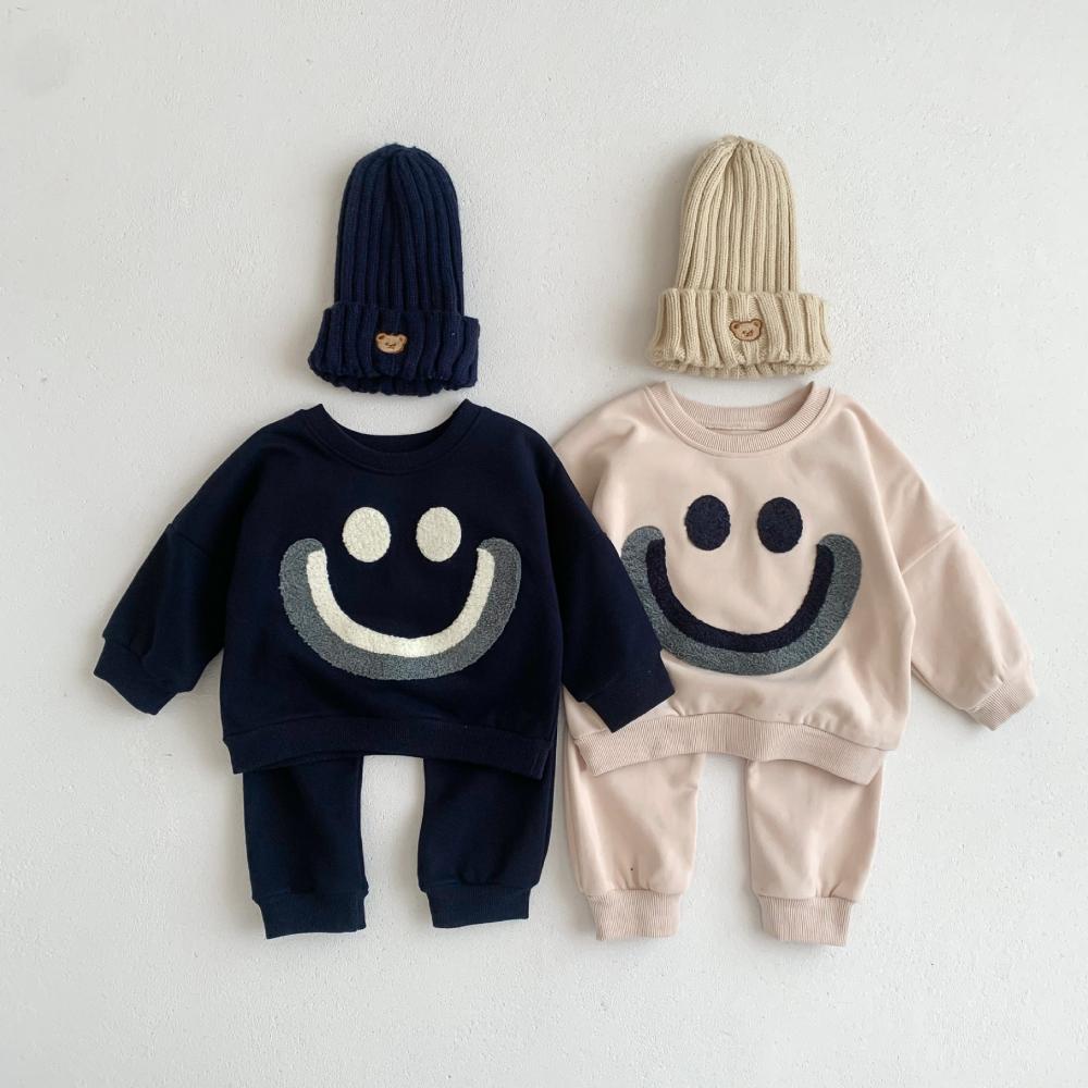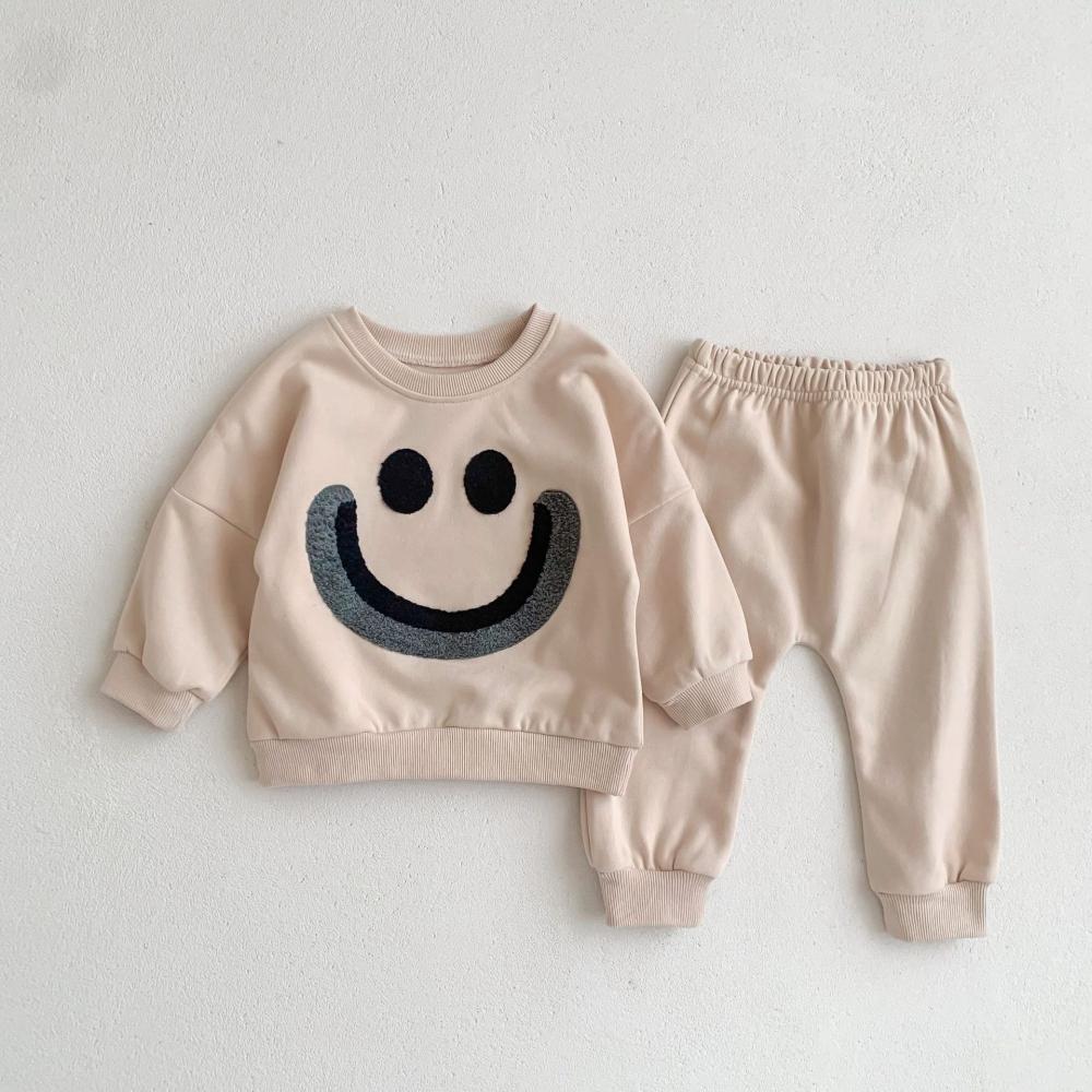 Spring And Autumn Cartoon Baby Fashion Smiling Face Rainbow Long Sleeve Vests Pants Suit Wholesale