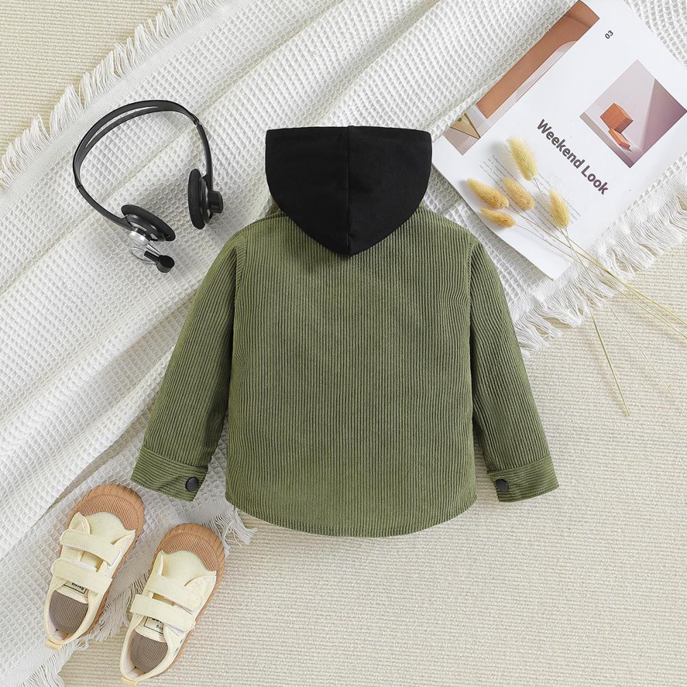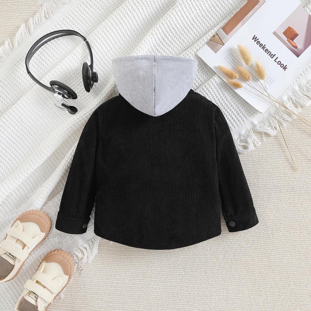 Spring and Autumn Children's Color Block Hooded Jacket Boys' Thin Corduroy Jacket Wholesale Boys Clothing
