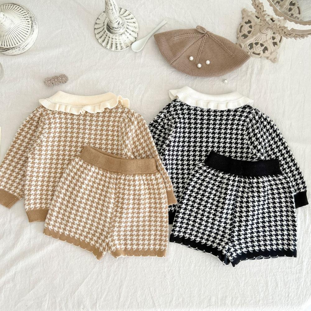 Spring and Autumn Western-style Girls Sweater Set Cardigan Top + Knitted Shorts Wholesale Girls Clothes
