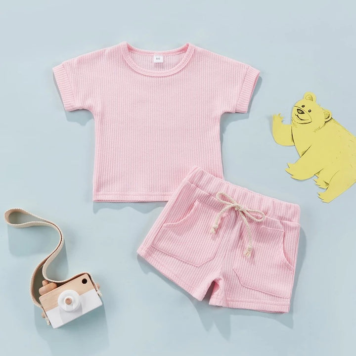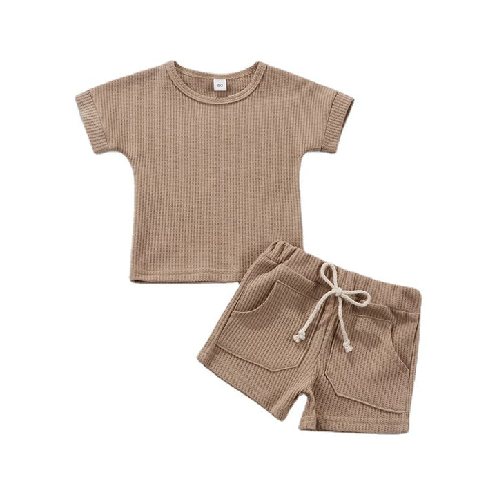 Summer Children's Short-sleeved Shorts Waffle Solid Color Suit Baby Wholesale Clothes
