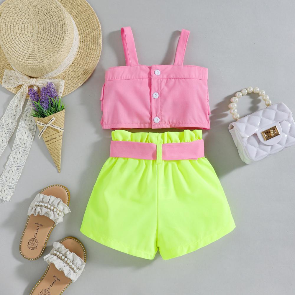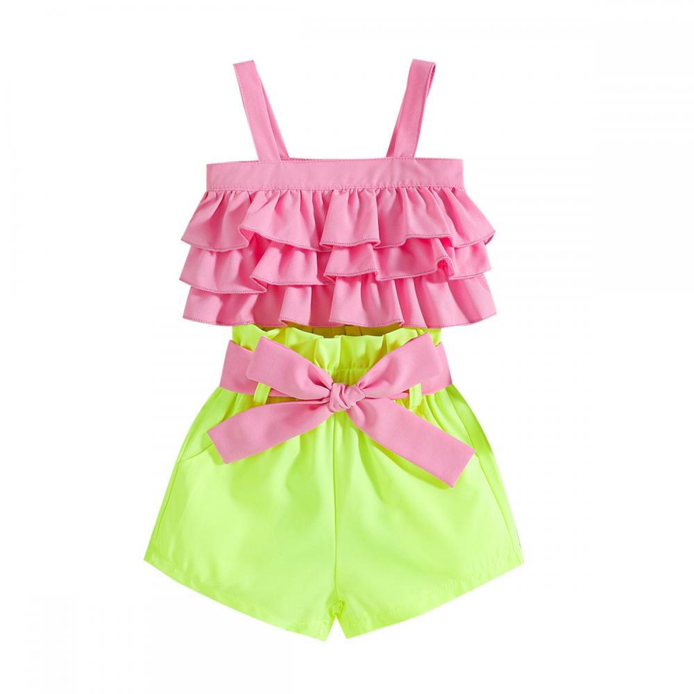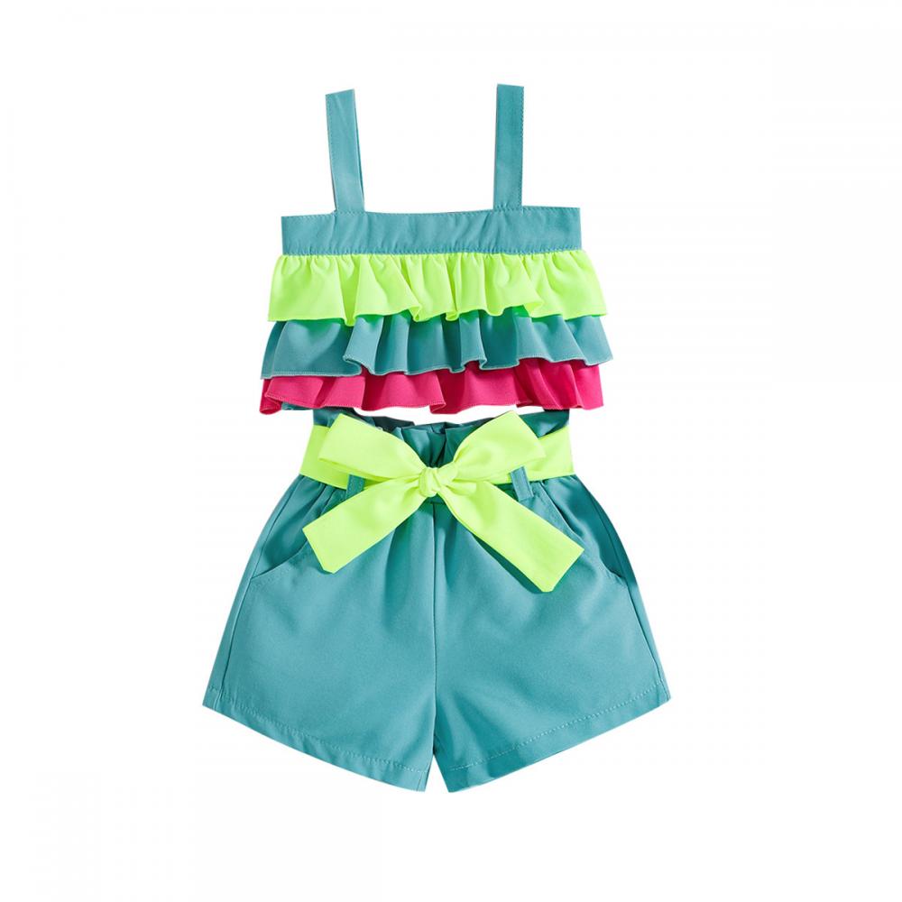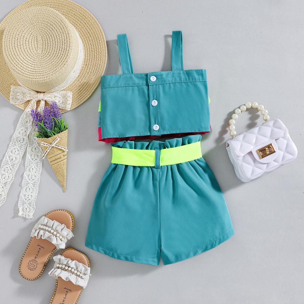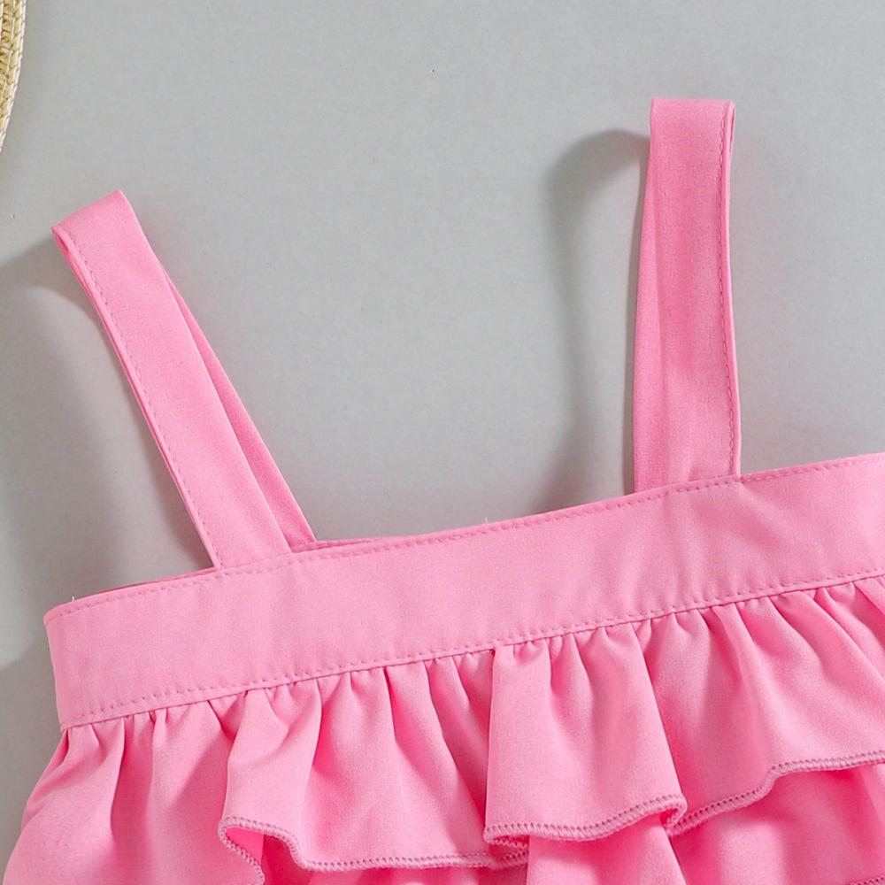 Toddler Girls Suspenders Flounce Shorts Two-piece Set trendy kids wholesale clothing